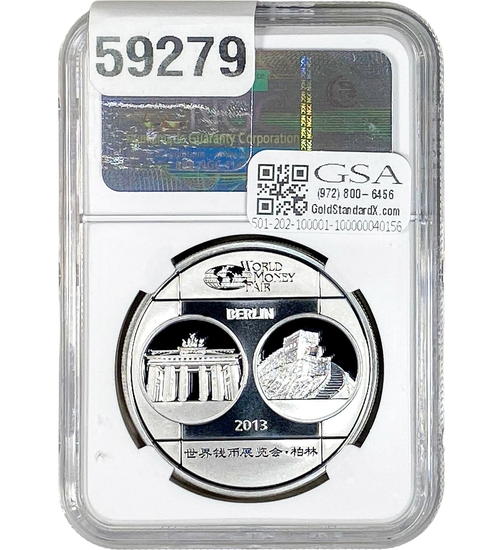e. Coins sold referencing a third-party grading service are sold “AS IS” without any express or implied warranty, except for a guarantee by GSA that they are genuine. Removal or alteration of the holder, voids all of Bidder’s claims concerning that Product. Certain warranties may be available from the grading services and Bidders are referred to them for further details: Numismatic Guaranty Corporation (NGC), PO Box 4776, Sarasota, FL 34230, www.ngccoin.com/services/writtenguarantee.asp; Professional Coin Grading Services (PCGS), PO Box 9458, Newport Beach, CA 92658, www.pcgs.com/guarantee.html; ANACS, 6555 S. Kenton St., Ste. 303, Englewood, CO 80111; and Independent Coin Grading Co. (ICG), 7901 East Bellview, Ave., Suite 50, Englewood, CO 80111.
