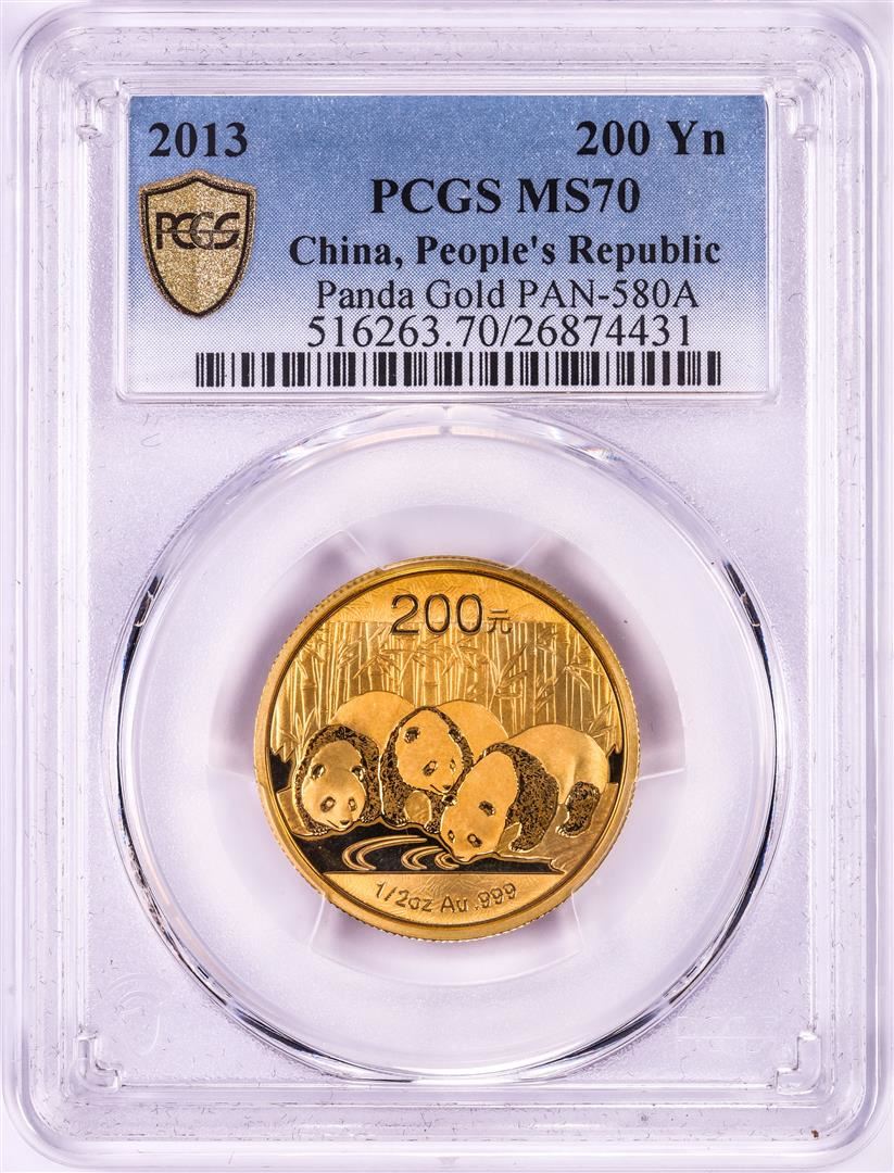 One 2013 China Peoples Republic 200 Yuan Gold Panda Coin PCGS MS70. PCGS Graded.