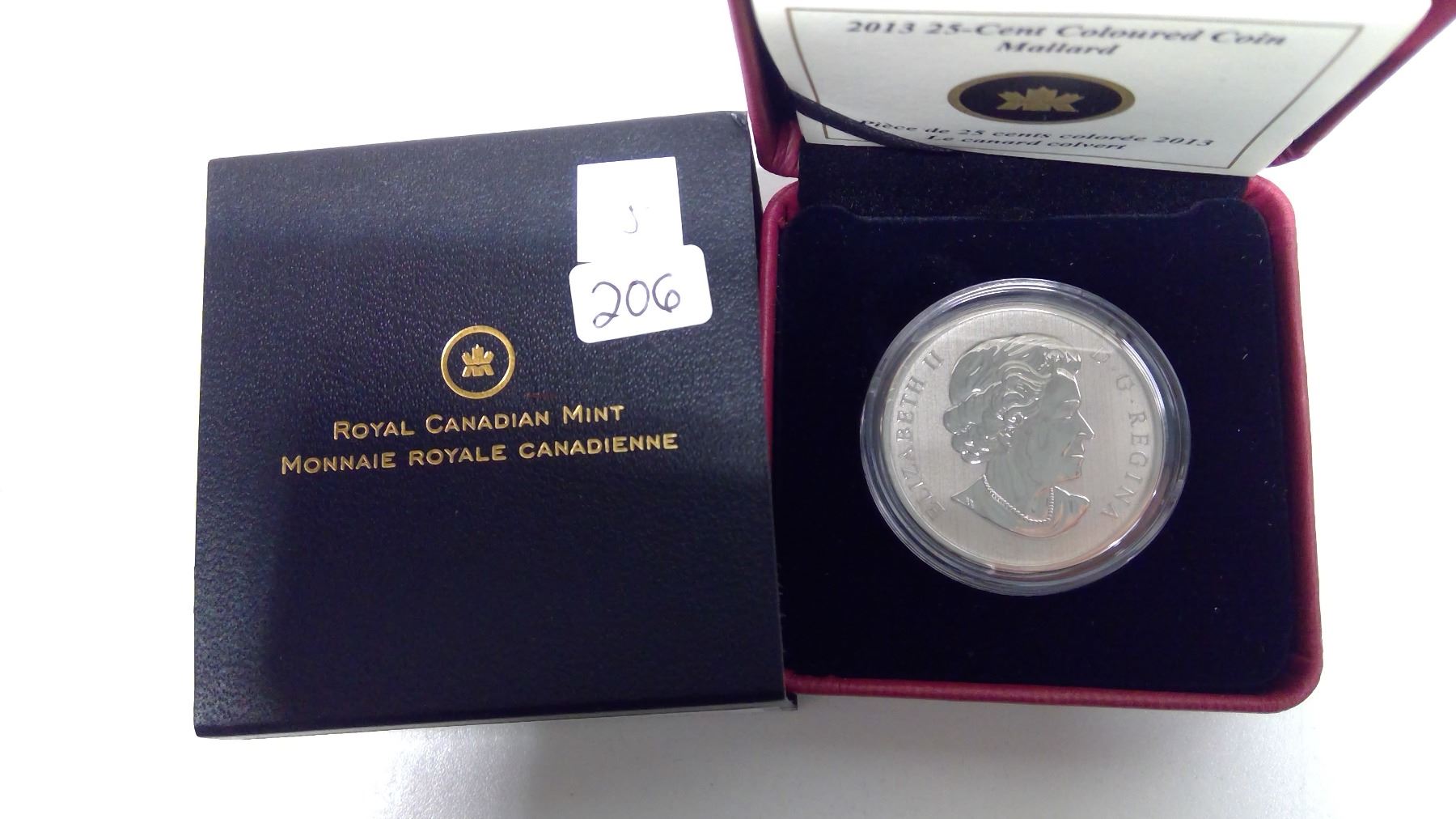 2013 Coloured Mallard Duck 25 Cents. Specimen. Housed in its original case and box of issue.