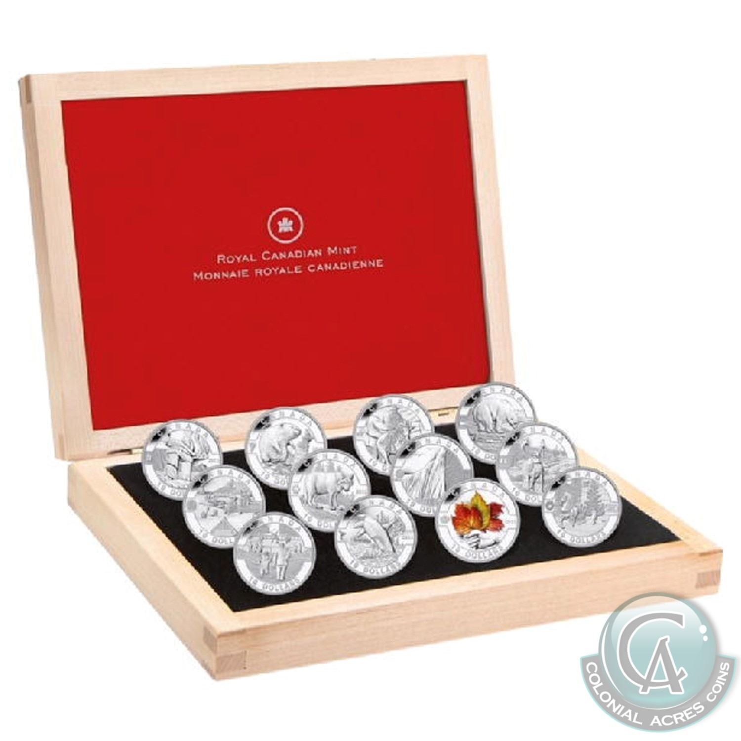 2013 Complete $10 O Canada 12-Coin Set with Deluxe RCM Issued Box (Tax Exempt). Coins may contain light toning.