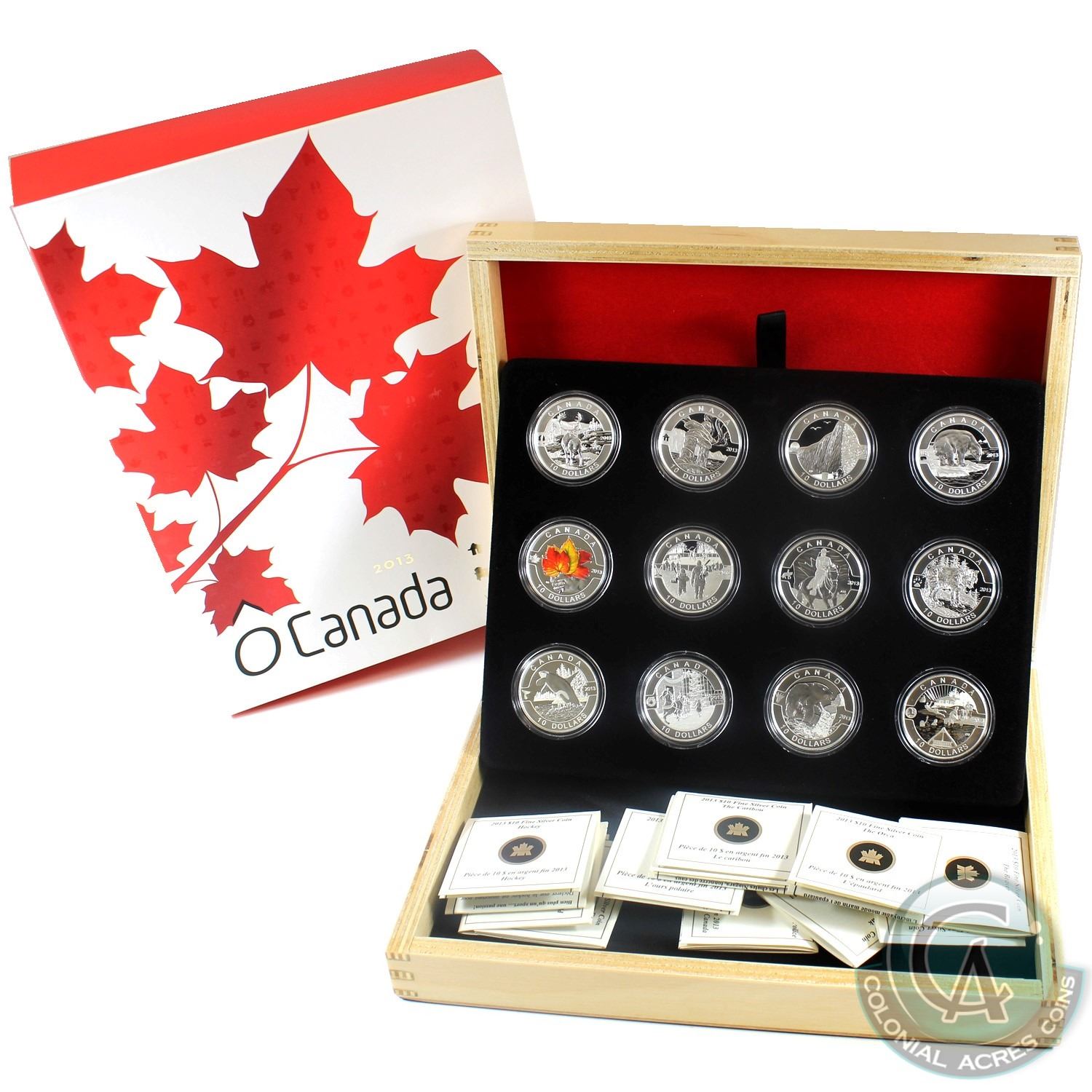 2013 Complete O Canada $10 Fine Silver 12-Coin Set with Deluxe RCM Box (Tax Exempt)