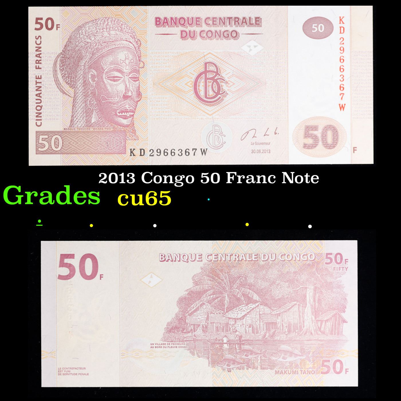 2013 Congo 50 Franc Note Grades Gem CU.
