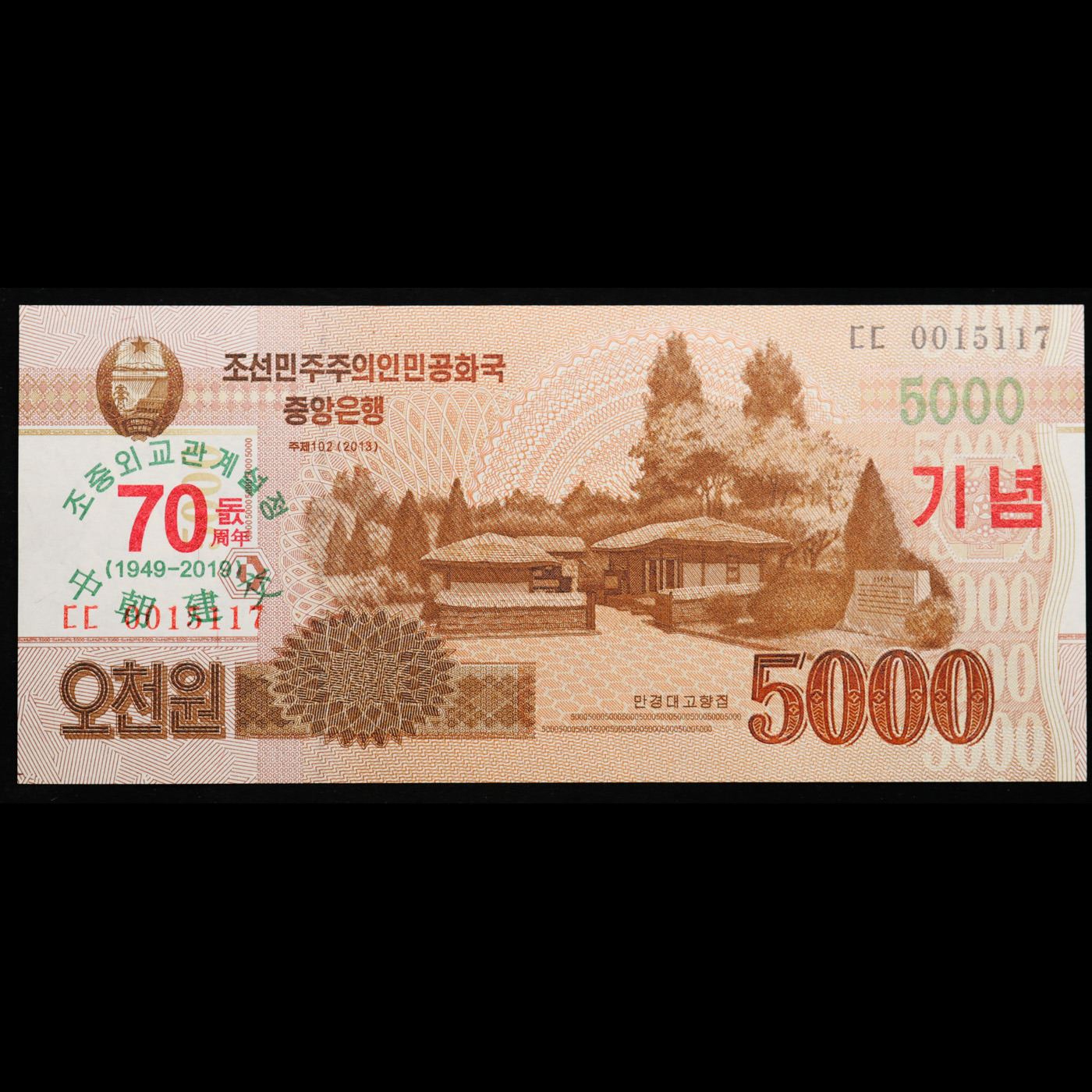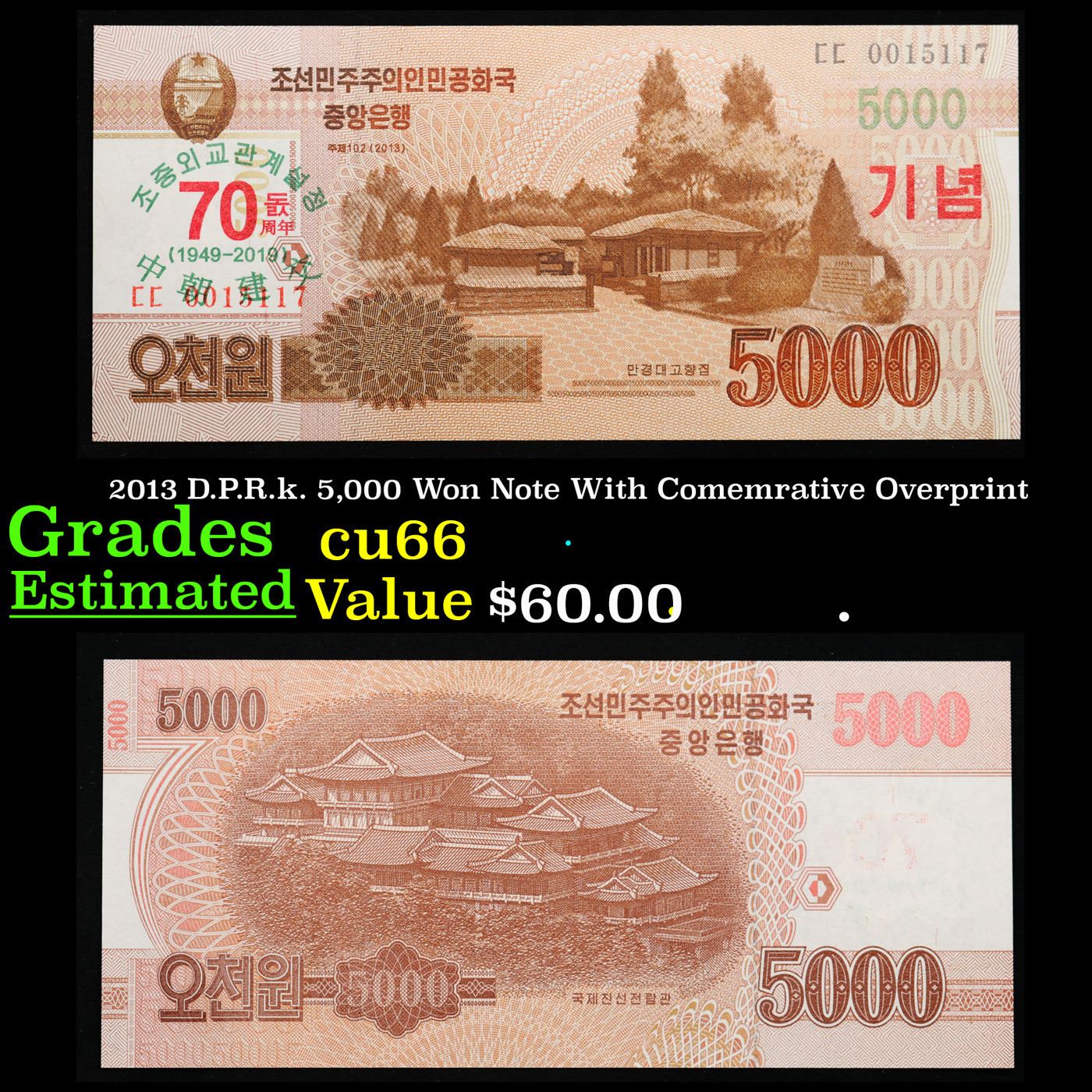 2013 D.P.R.k. 5,000 Won Note With Comemrative Overprint Grades Gem+ CU.