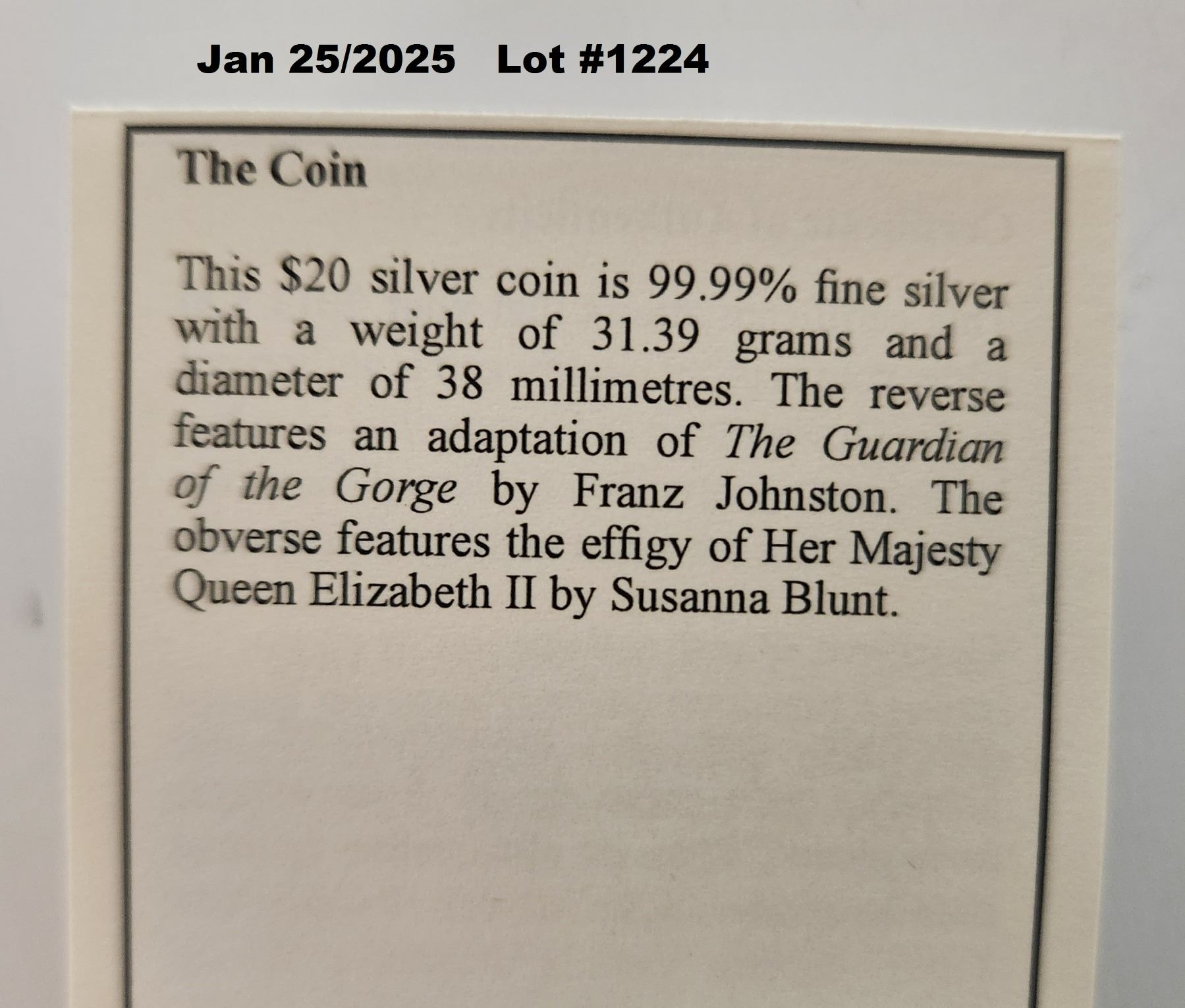 This item SOLD at 2025 Jan 25 @ 17:18UTC-06:00 : CST/MDT