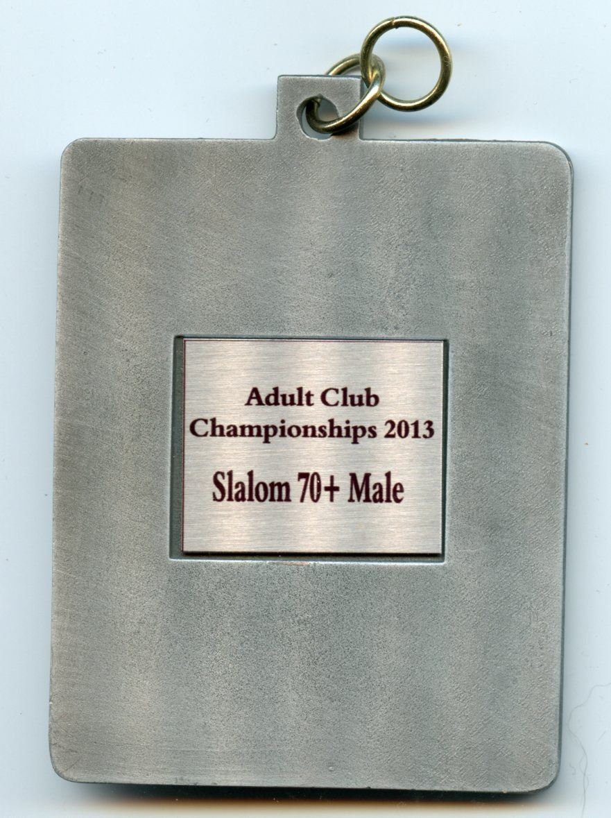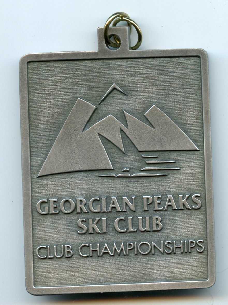 Thornbury Ontario. Silver medal (pewter?). Slalom 70+ Male. Approx. 88mm tall.