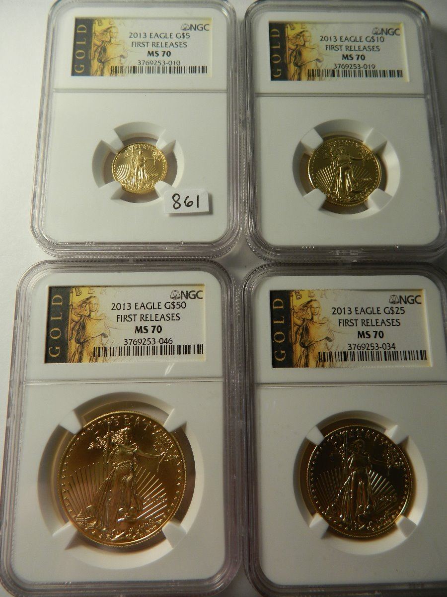 $5, $10, $25 & $50. Actual Gold Weight For the Set is 1.85 Ounce Fine Gold, Nice Set!