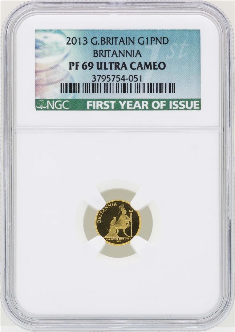 One 2013 Great Britain 1 Britannia Pound Gold Coin NGC PF69 Ultra Cameo. NGC Certified.