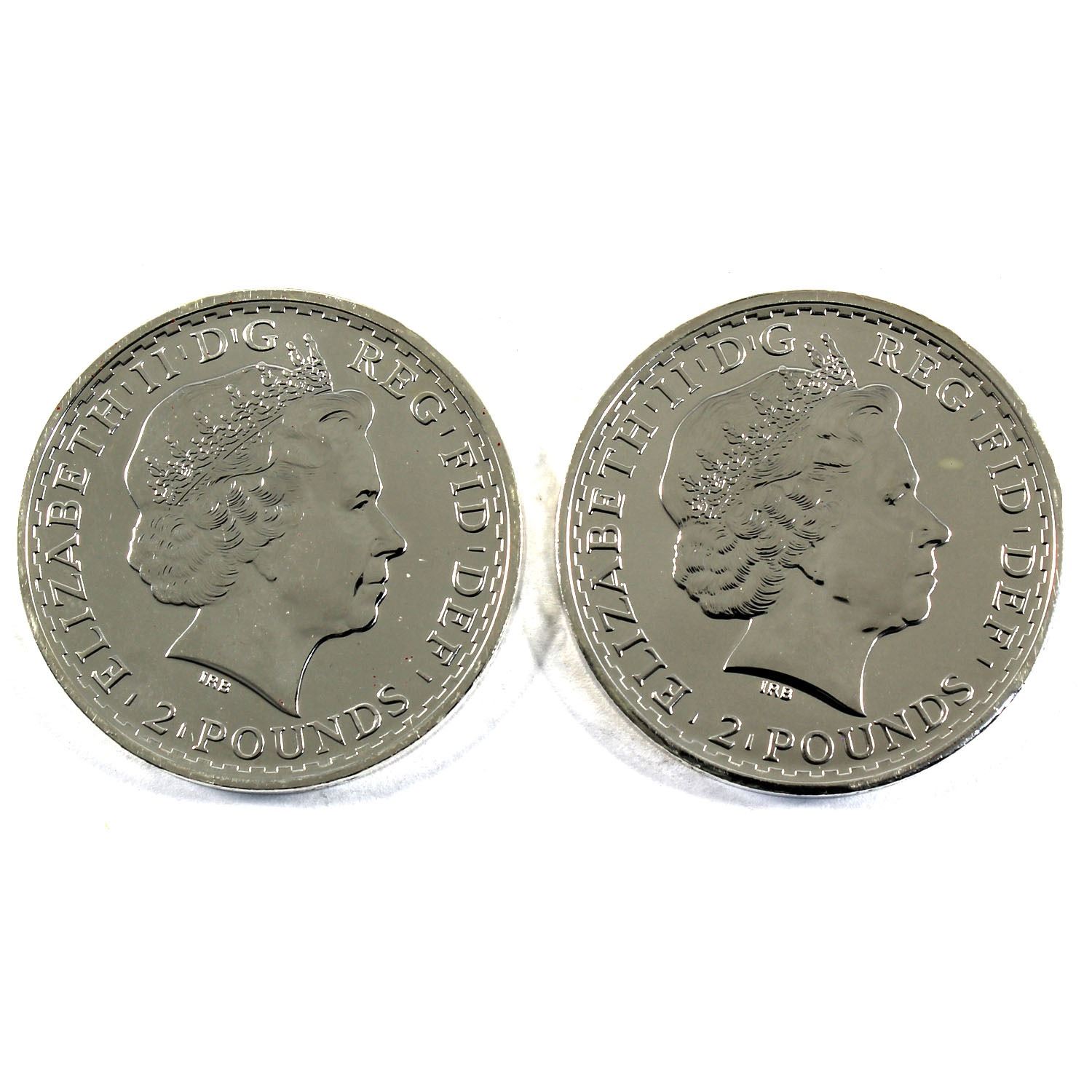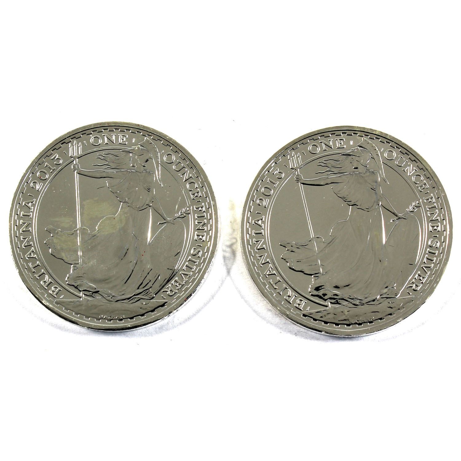 2013 Great Britain 1oz .999 Fine Britannias (toned). 2pcs (TAX Exempt)