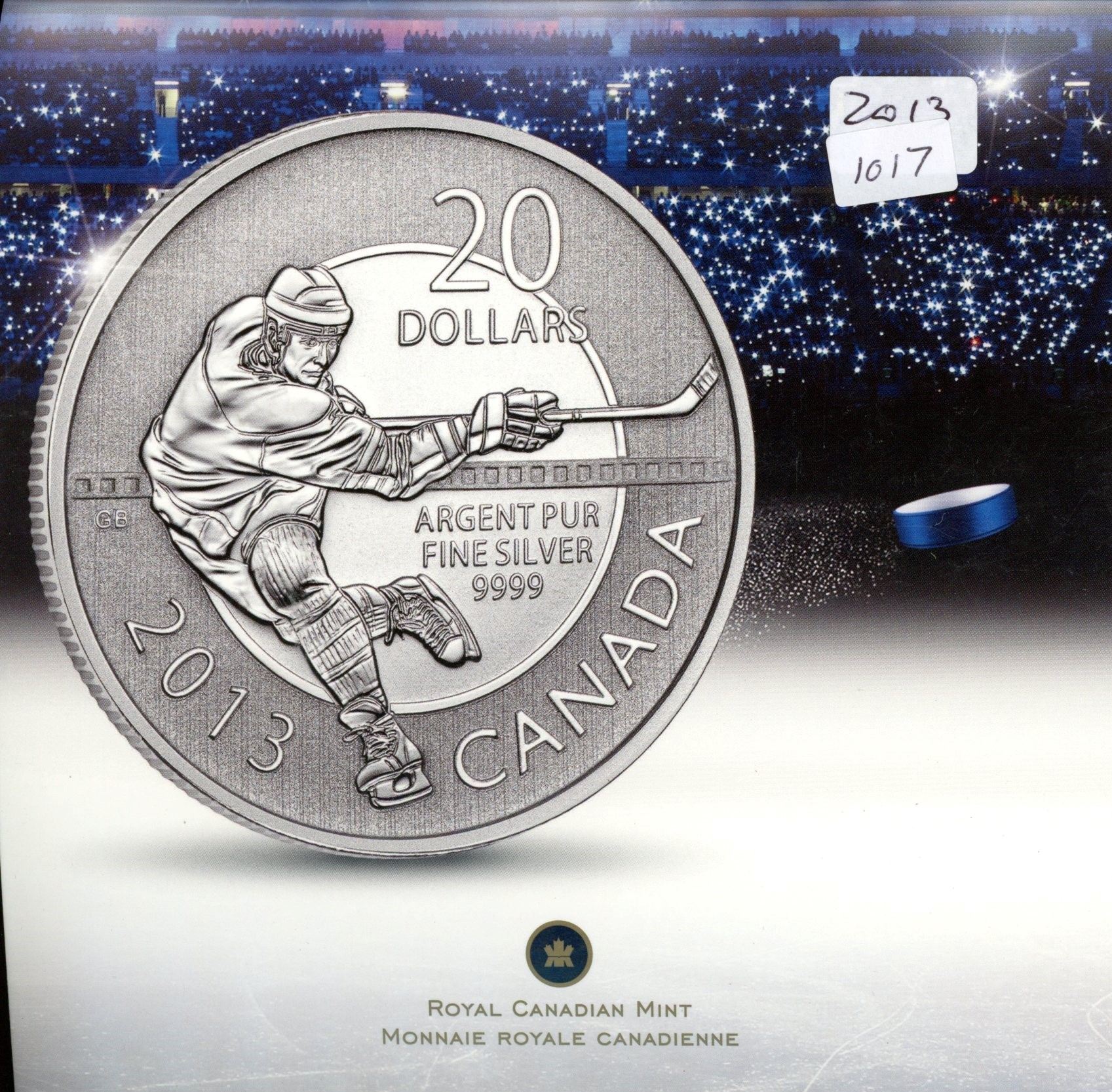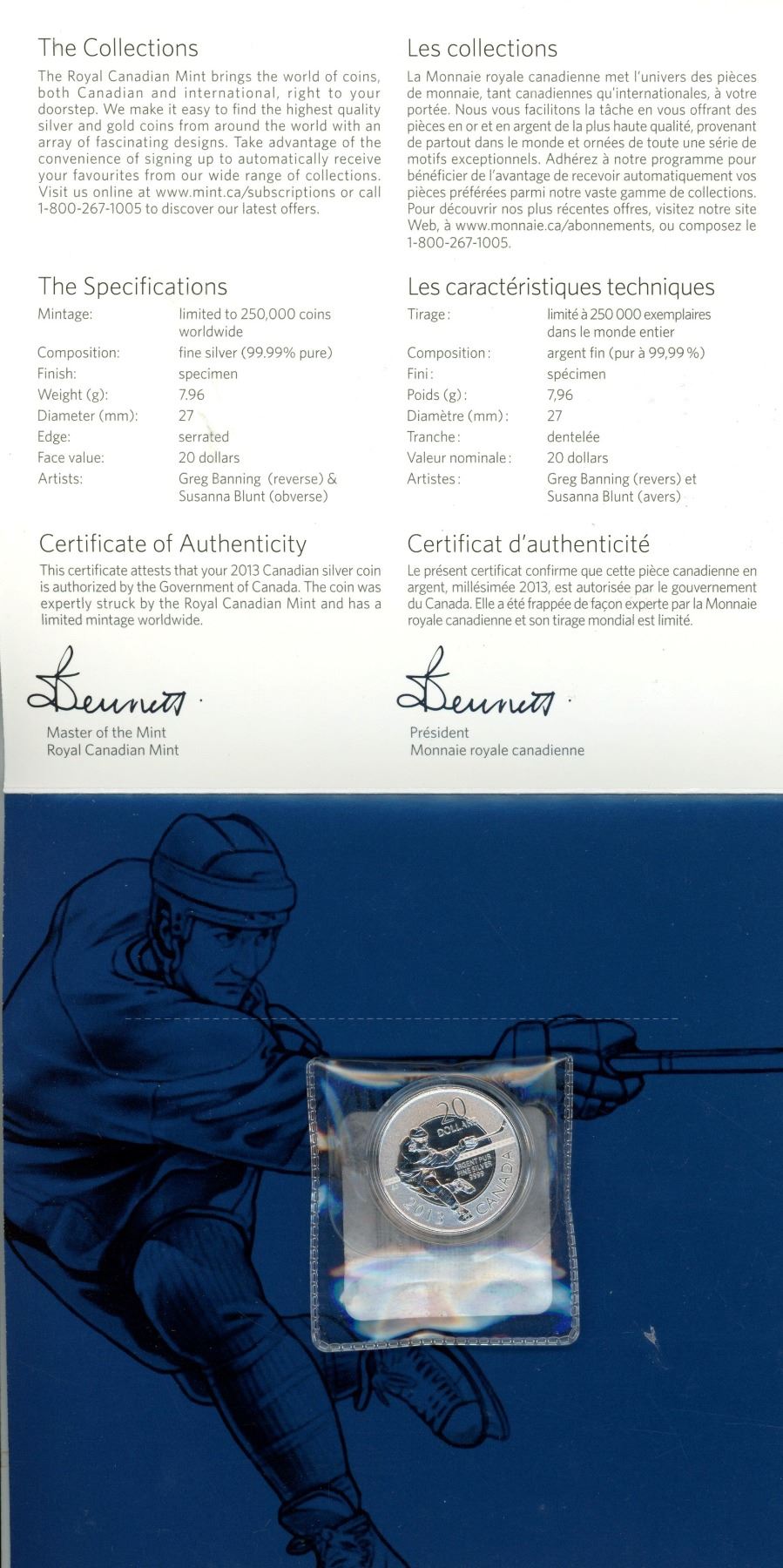 2013 Hockey Silver $20. .9999 pure silver. Housed in folder of issue.