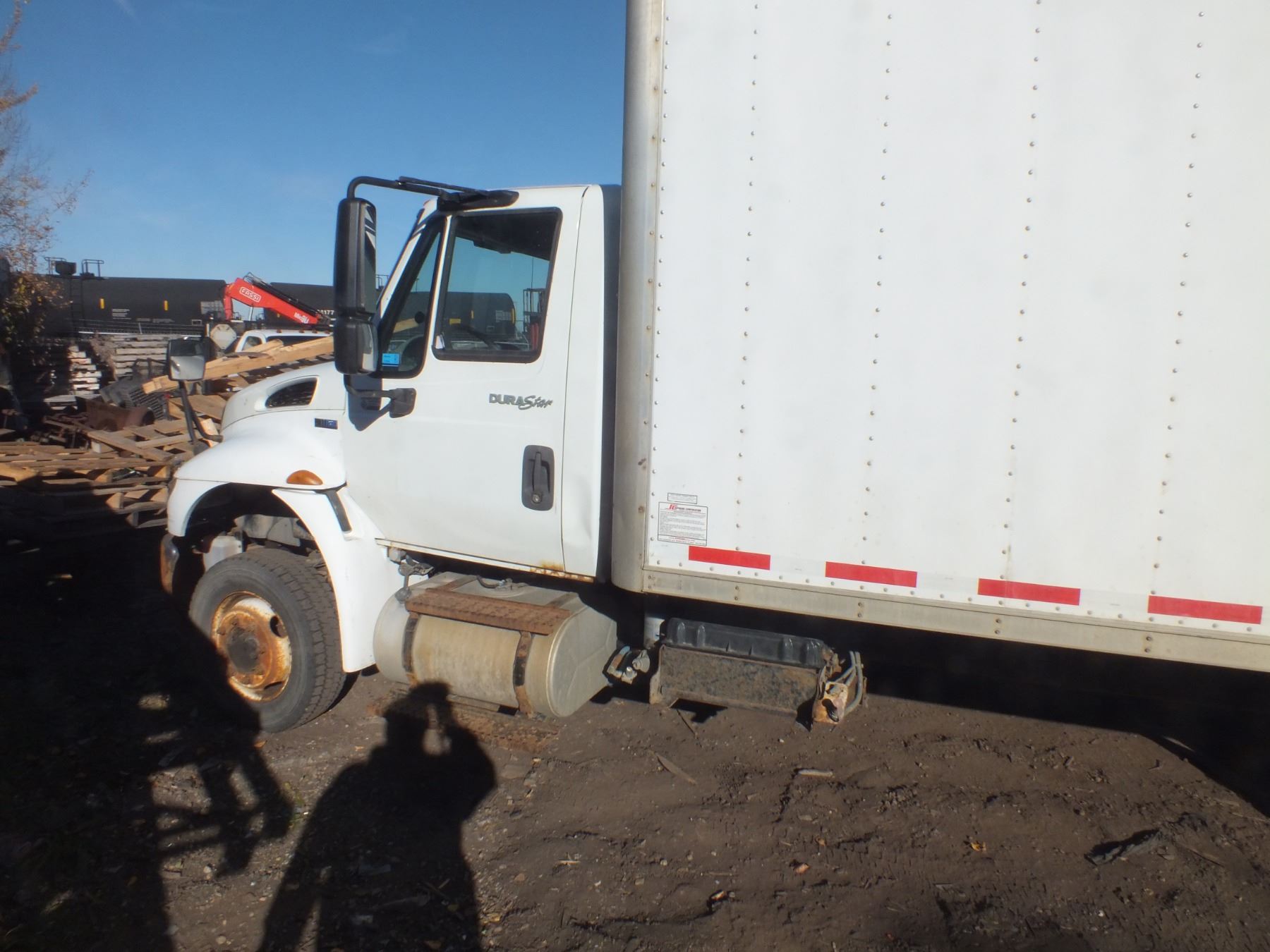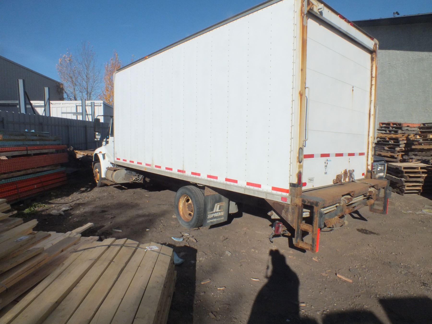 2013 International Dura Star 4300 SBA 4x2 5 Ton Box Truck, has electric tail gate, power windows, power locks, mirrors, CD player, passenger window is broken, has a 20 ft box, Diesel, no keys km unknown, condition unknown...Albert Health Services Vehicle...used