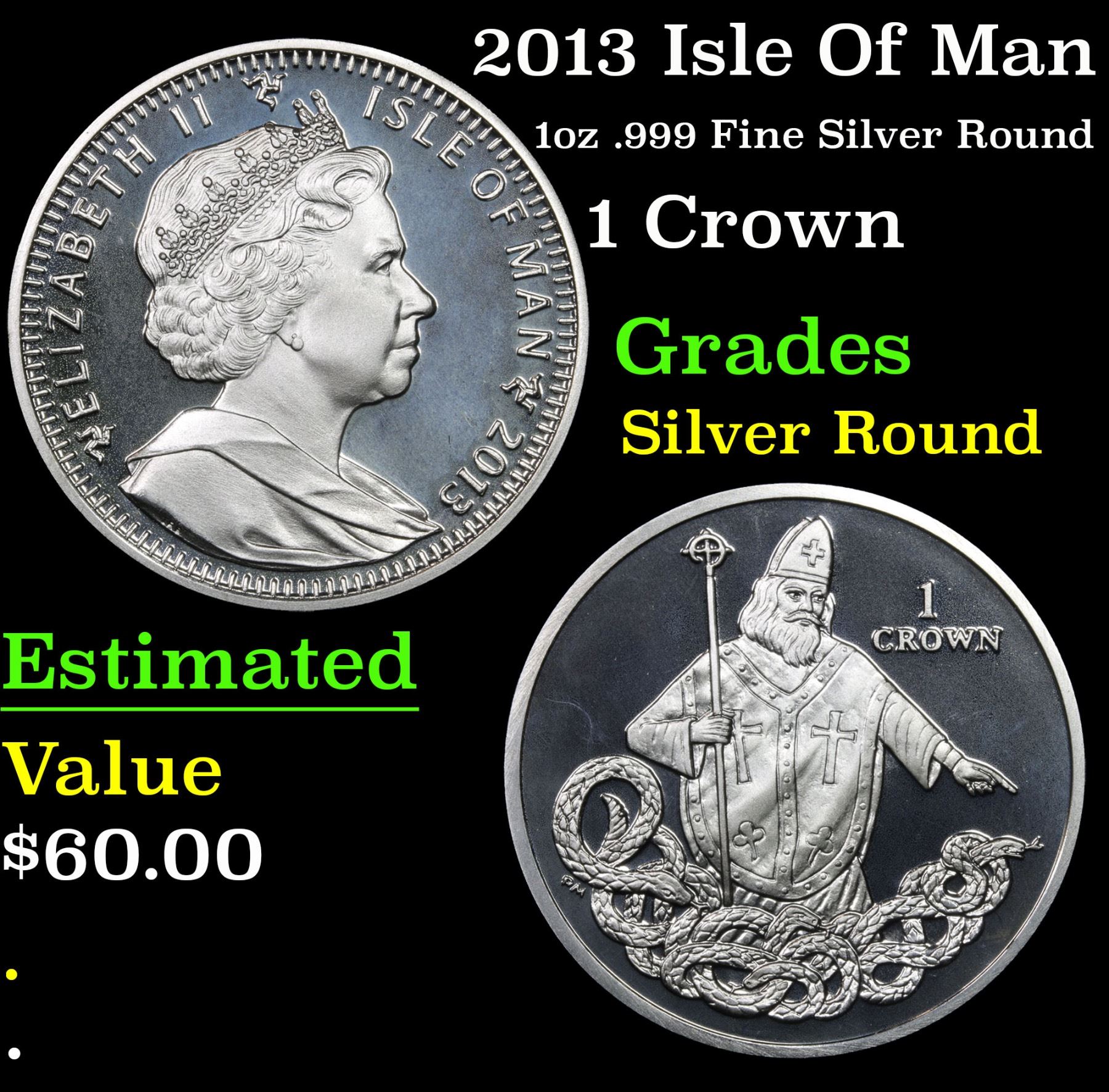 2013 Isle Of Man 1 Crown . Silver Round Rounds Grades Silver Round.