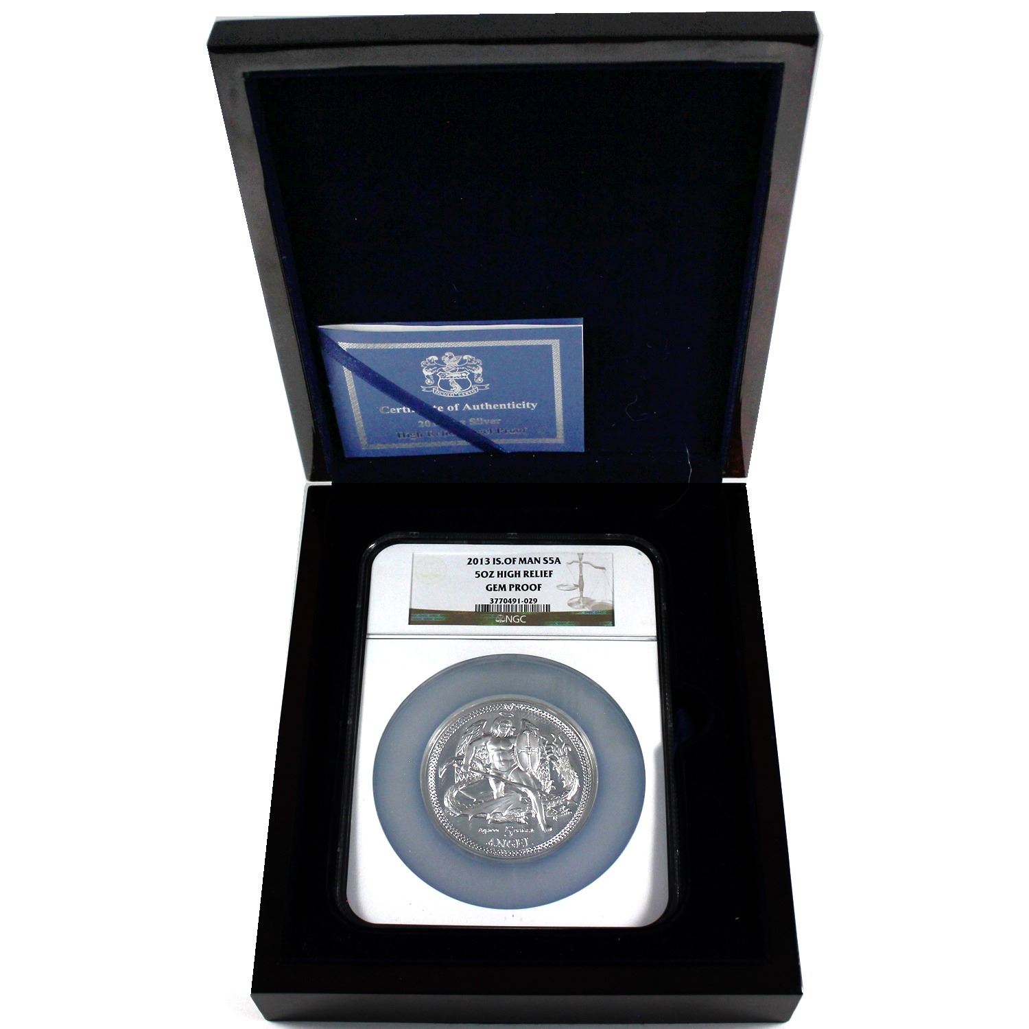 2013 Isle of Man $5 Angel 5oz High Relief Fine Silver NGC Certified Gem Proof in Deluxe Box with COA. *The consignor of this item will be donating the sale proceeds to the Ukrainian relief fund. (Tax Exempt)