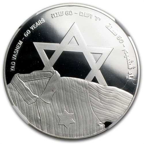 2013 Israel Yad Vashem Proof-Like Silver 1 NIS Coin Err **|**|** 2013 Israel Yad Vashem Proof-Like Silver 1 NIS Coin Error NGC ; MSRP: $400