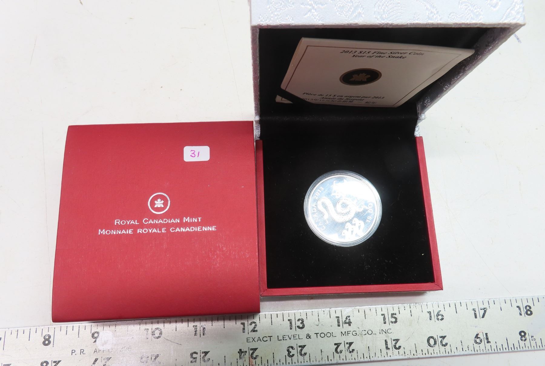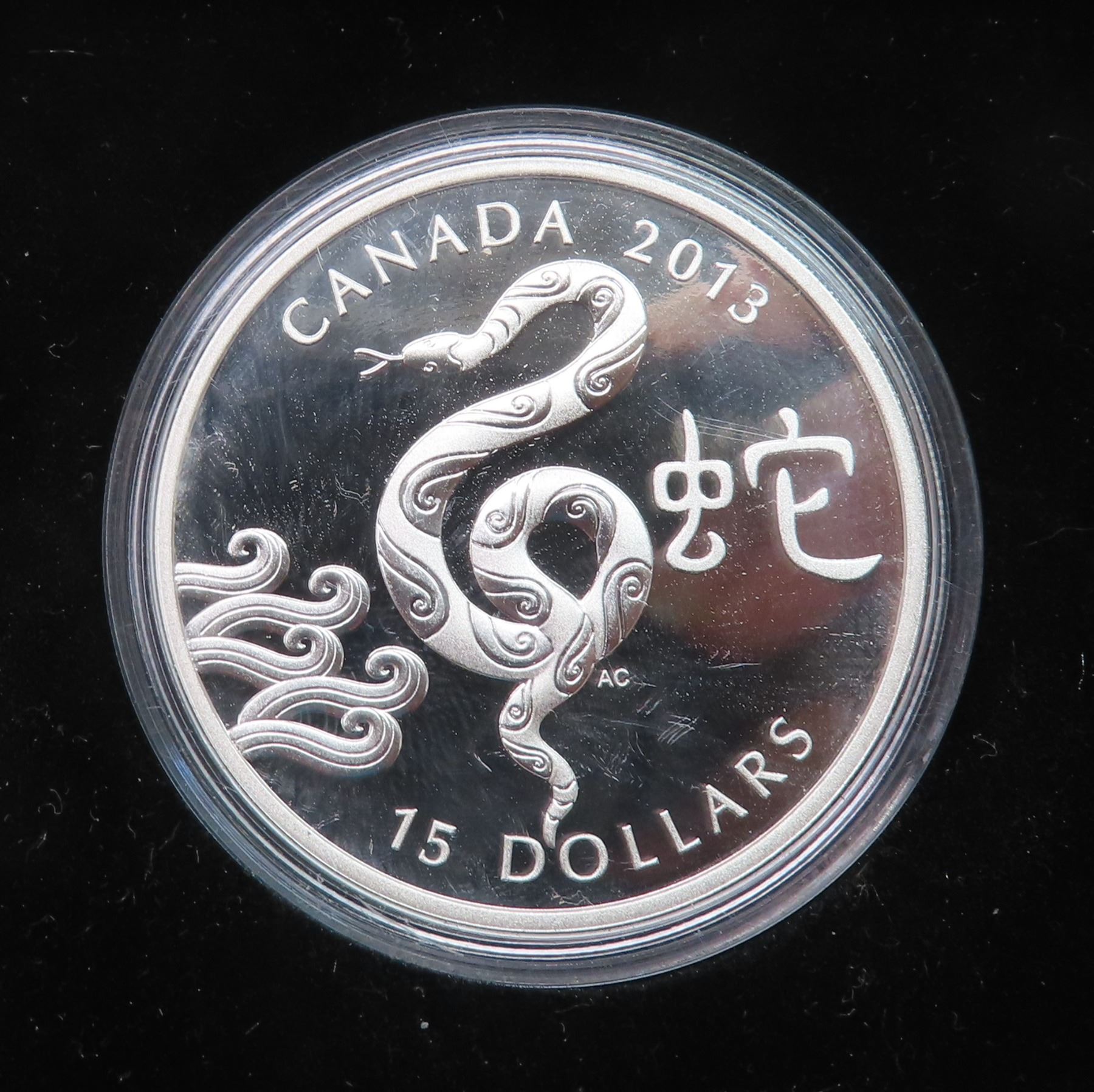 2013 Lunar Lotus Year of the Snake $15. Scalloped Edges, Proof with Ultra Heavy Cameo. Sterling Silver. Housed in its original case & box of issue. Mintage of only 21,906.