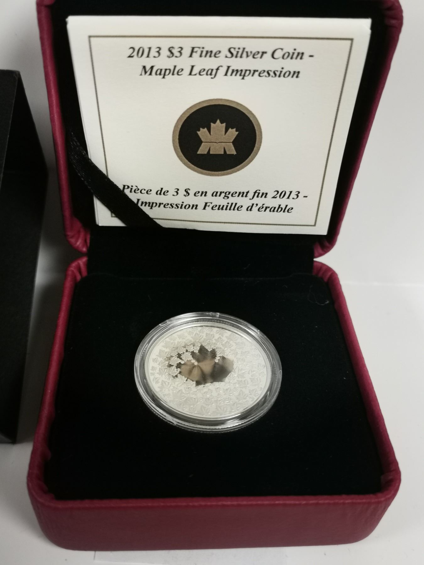 2013 Maple Leaf Impression, Canadian 3 dollar fine silver coin