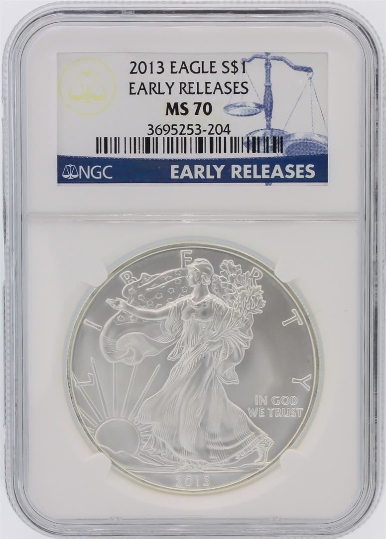 One 2013 NGC Graded MS70 $1 American Silver Eagle Silver Coin. NGC Certified.