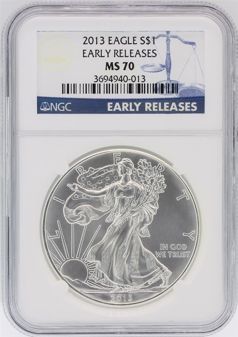 One 2013 NGC MS70 Early Release American Silver Eagle Dollar. NGC Certified.
