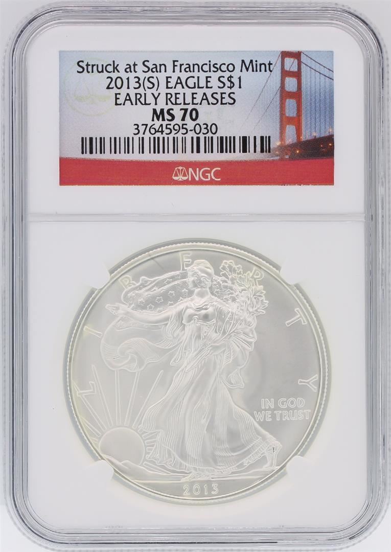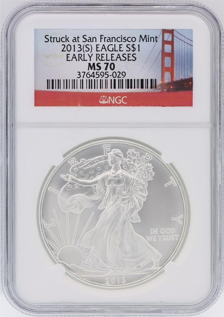 2013 NGC MS70 Struck at San Francisco Mint American Eagle Silver Dollar Coin Set Lot of 2. NGC Certified.