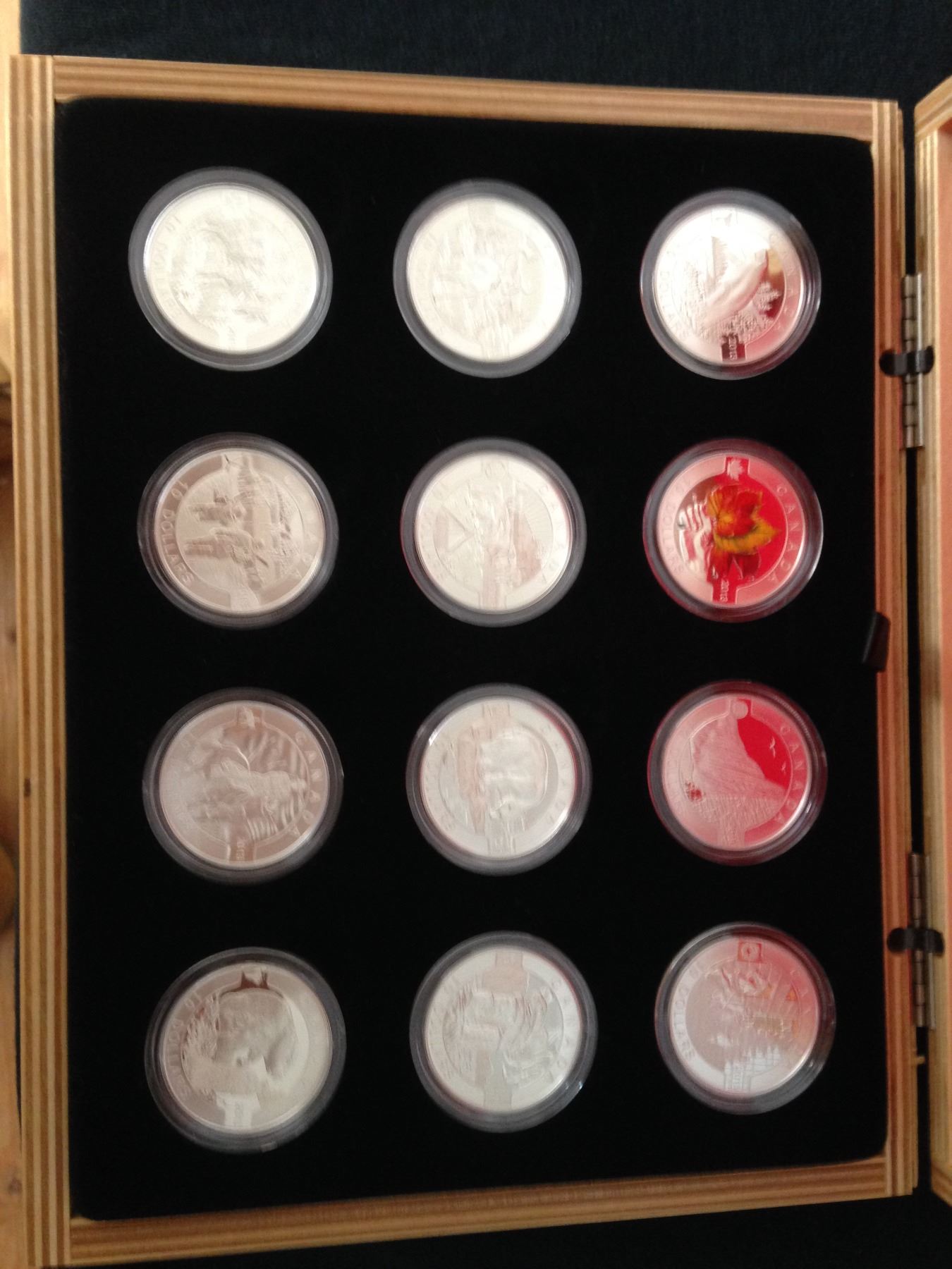 O Canada 12 Coins Serie Set #1 Collector Set (The Inukshuk, Hockey, The Polar Bear, Te Maple Leaf Painted, The Orca, The Caribou, The royal Canadian Mounted Police, The Beaver, Canadian Holiday Season, Canadian Summer Fun, The Wolf, Niagara Falls)