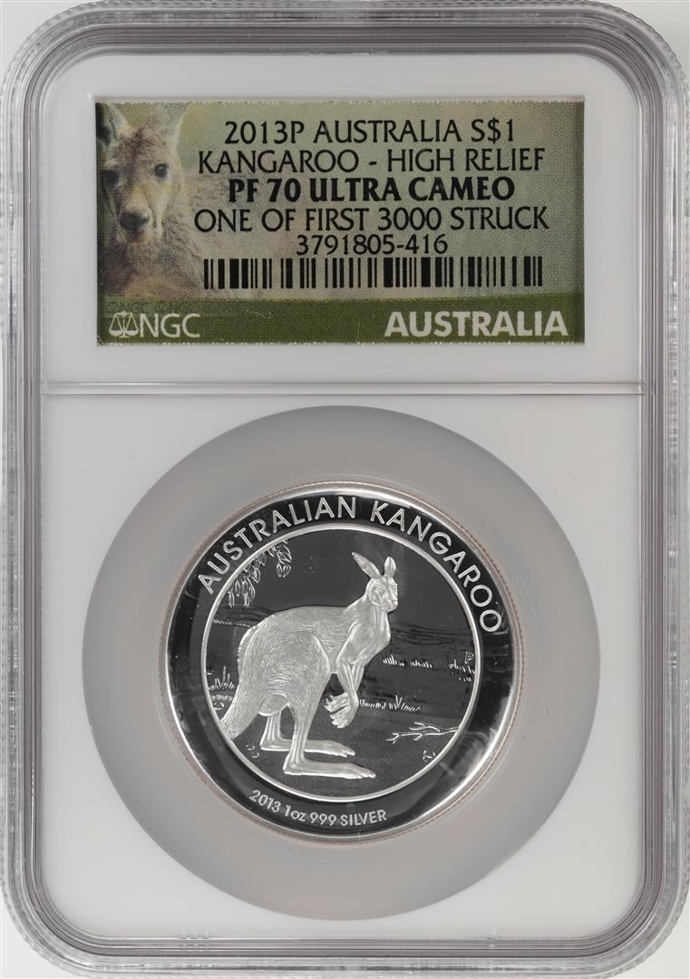 One 2013-P $1 Australia Kangaroo Silver Proof Coin NGC PF70. NGC Certified.