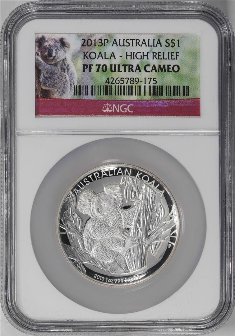 2013-P $1 Australia Proof High Relief Koala Silver Coin NGC PF70 Ultra Cameo