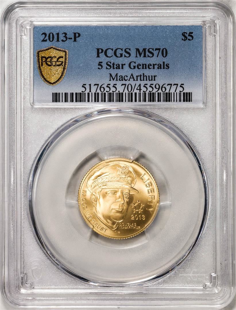 2013-P $5 Liberty 5 Star Generals MacArthur Gold Coin PCGS MS70