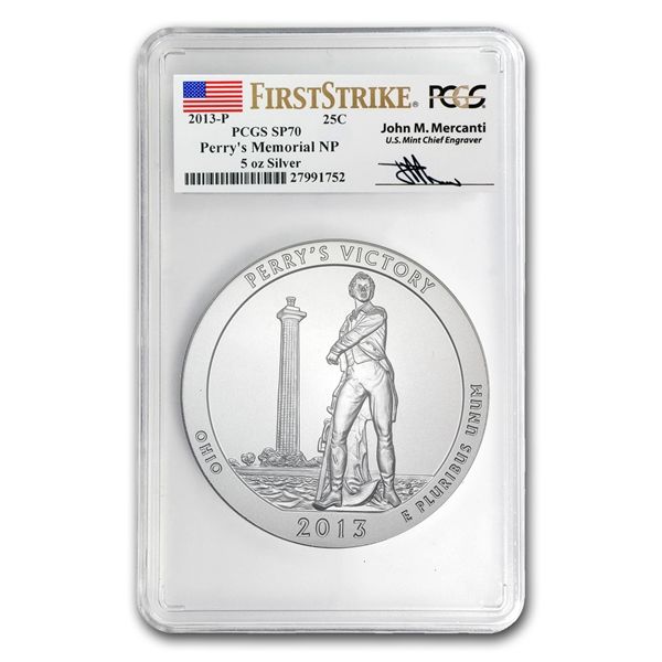 2013-P 5 oz Silver ATB - Perry's Victory SP-70 (FS) PCG **|**|** 2013-P 5 oz Silver ATB - Perry's Victory SP-70 (FS) PCGS-Mercanti ; MSRP: $1000