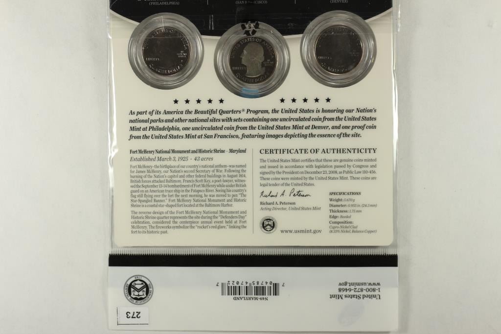 STATE QUARTERS, AMERICA THE BEAUTIFUL QUARTERS 3 COIN SET, ORIGINAL US MINT PACKAGING