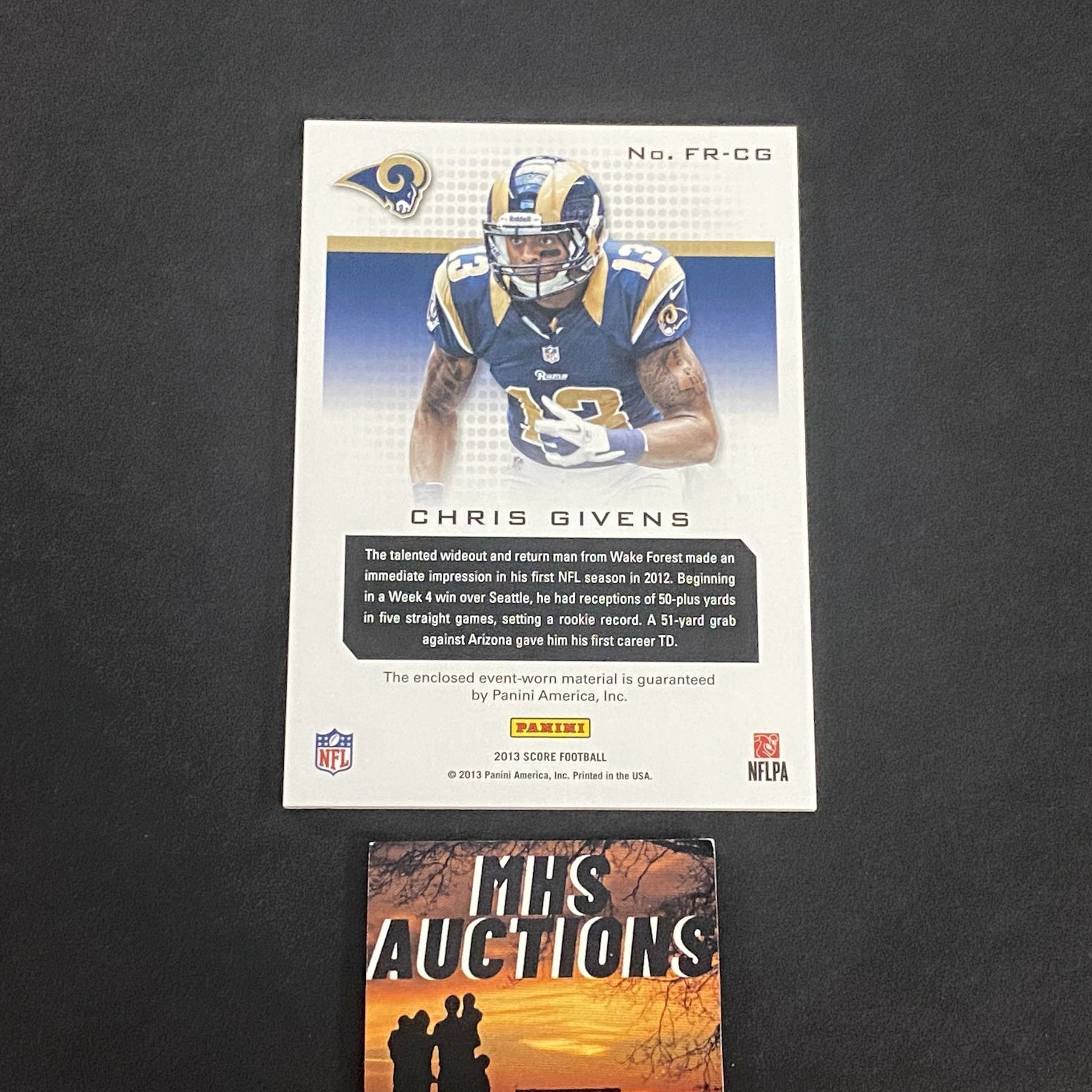 2013 PANINI CHRIS GIVENS JERSEY CARD