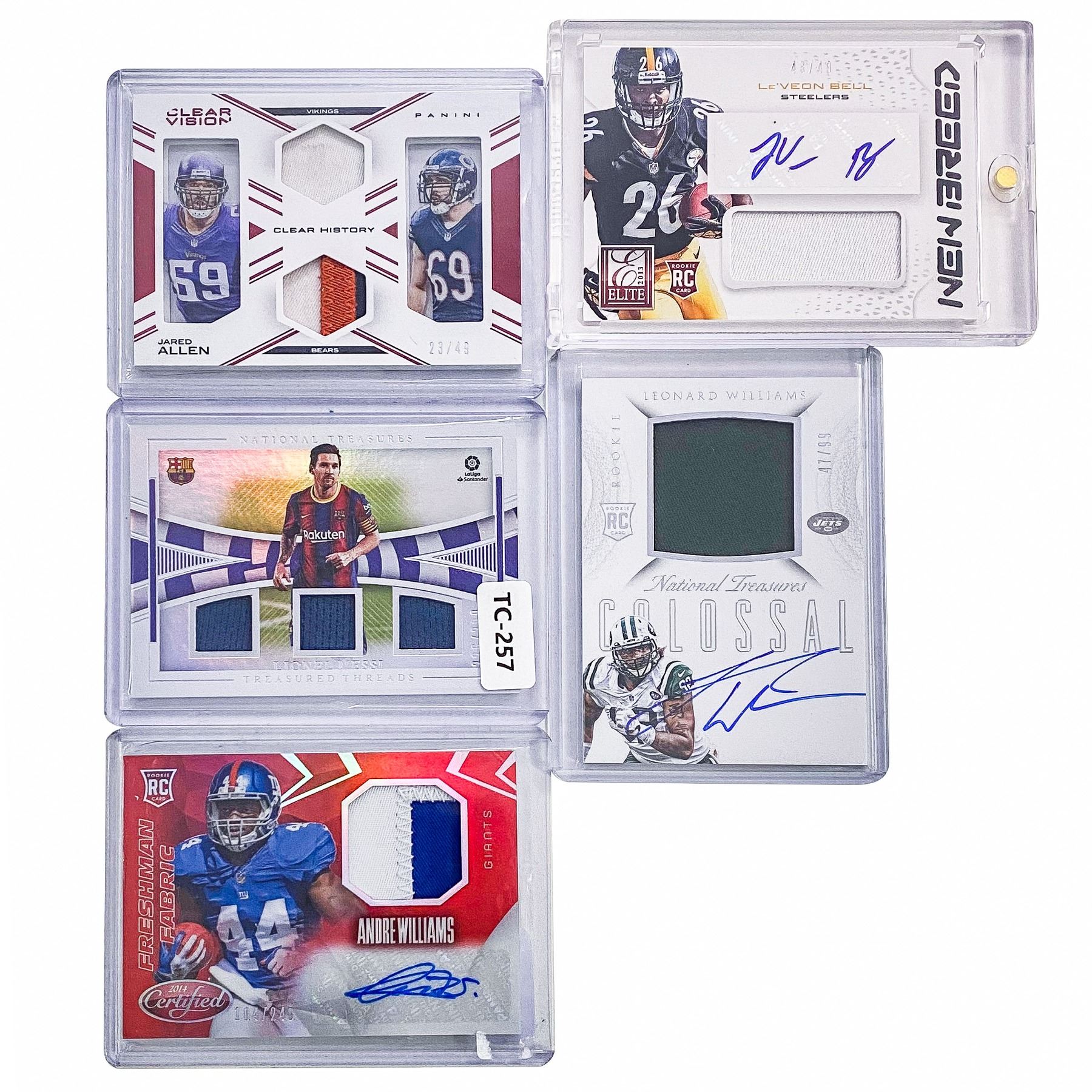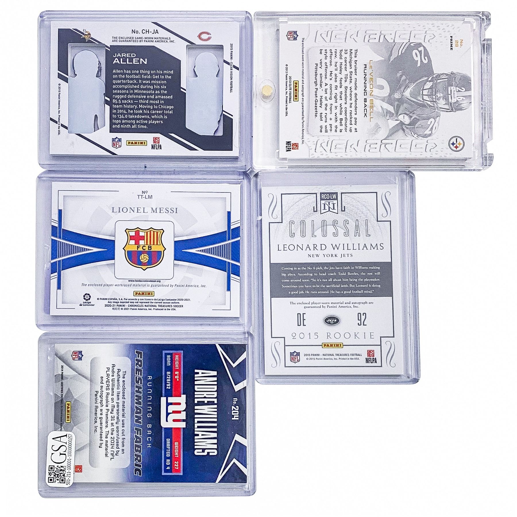 2013 Panini Elite Breed Le'Veon Bell #28, 2014 Panini Andre Williams #204, 2015 Panini Jared Allen CH-JA, 2015 Panini National Treasures Leonard Williams RCO-LW, 2020 Panini Chronicles Lionel Messi TT-LM