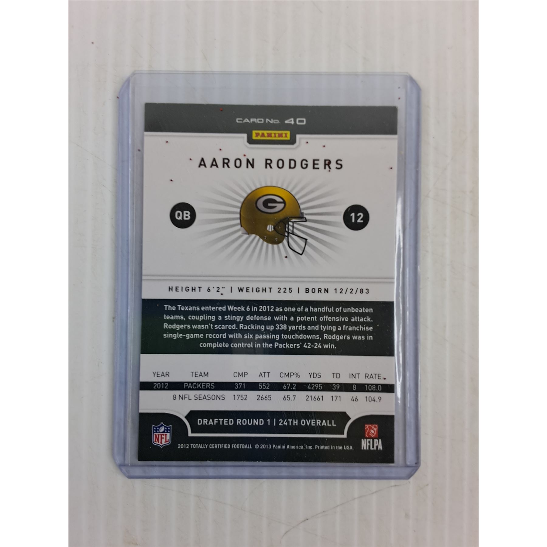 2013 Panini NFL Aaron Rodgers "Platinum Red - Totally Certified" Card - Cannot Guarantee Authenticit