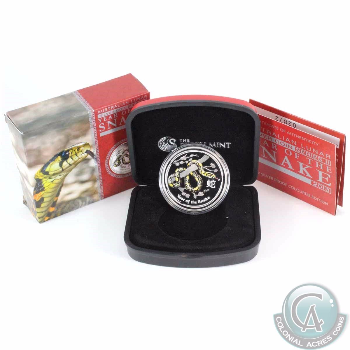 2013 Perth Mint Australia Year of the Snake 1oz. Coloured (Yellow & Black) Edition Silver Proof Coin (TAX Exempt)