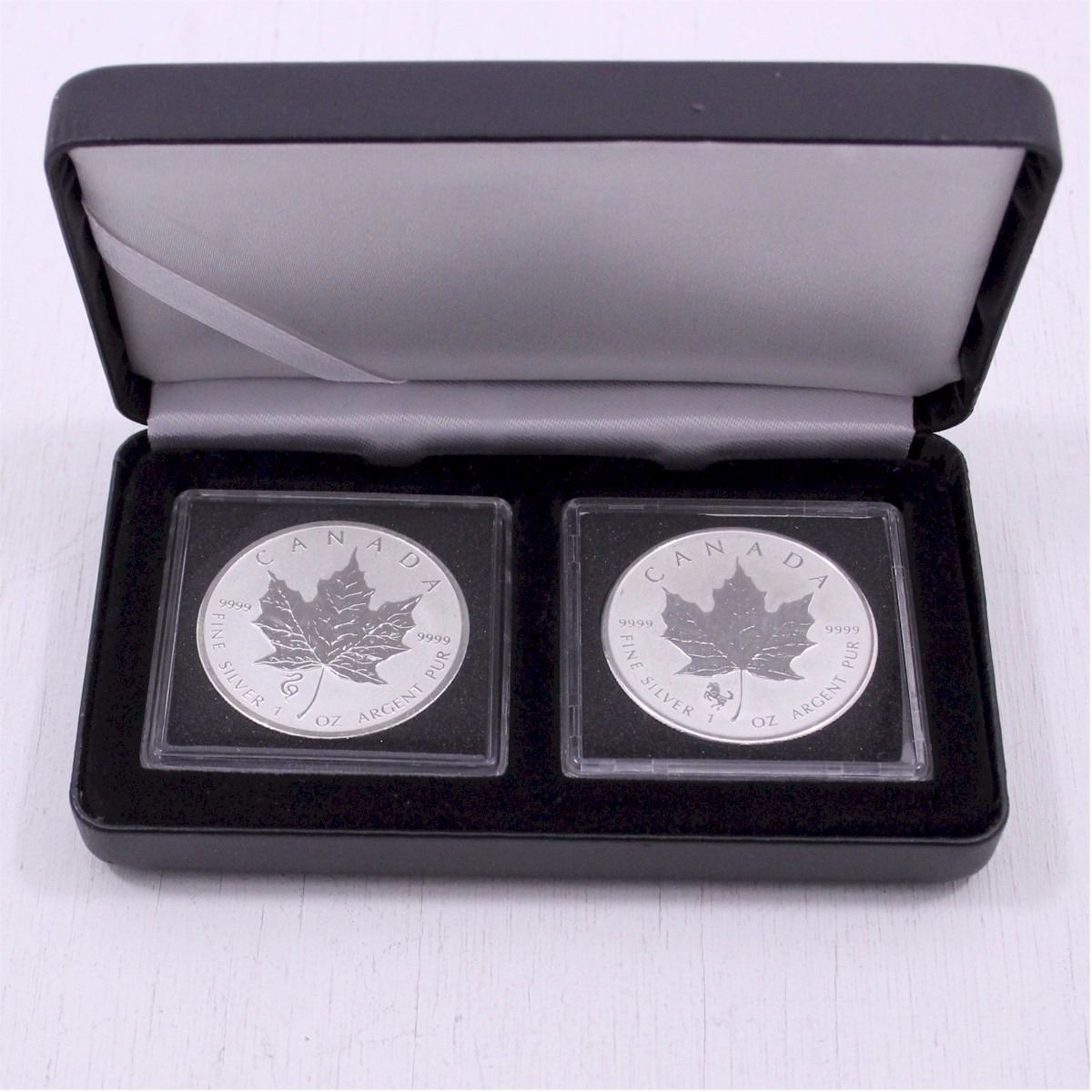 2013 Privy Snake and 2014 Privy Horse 1oz .9999 Fine Silver Maple Leafs. Coin comes Encapsulated in black leatherette Display Box. (Tax Exempt). Buyers Premium will be added on all items as per our terms of sale. We accept Paypal, Credit Card, E-Transfer Payments, Cheque or Money Orders (there is an additional 3% fee for using Paypal or Credit Card). All invoices will be emailed immediately following the auction, please contact us if you would like to pay by credit card or receive a new revised lower total for mailing in payment or sending an e-transfer (3% discount). All Items Are Sold "AS IS", no returns