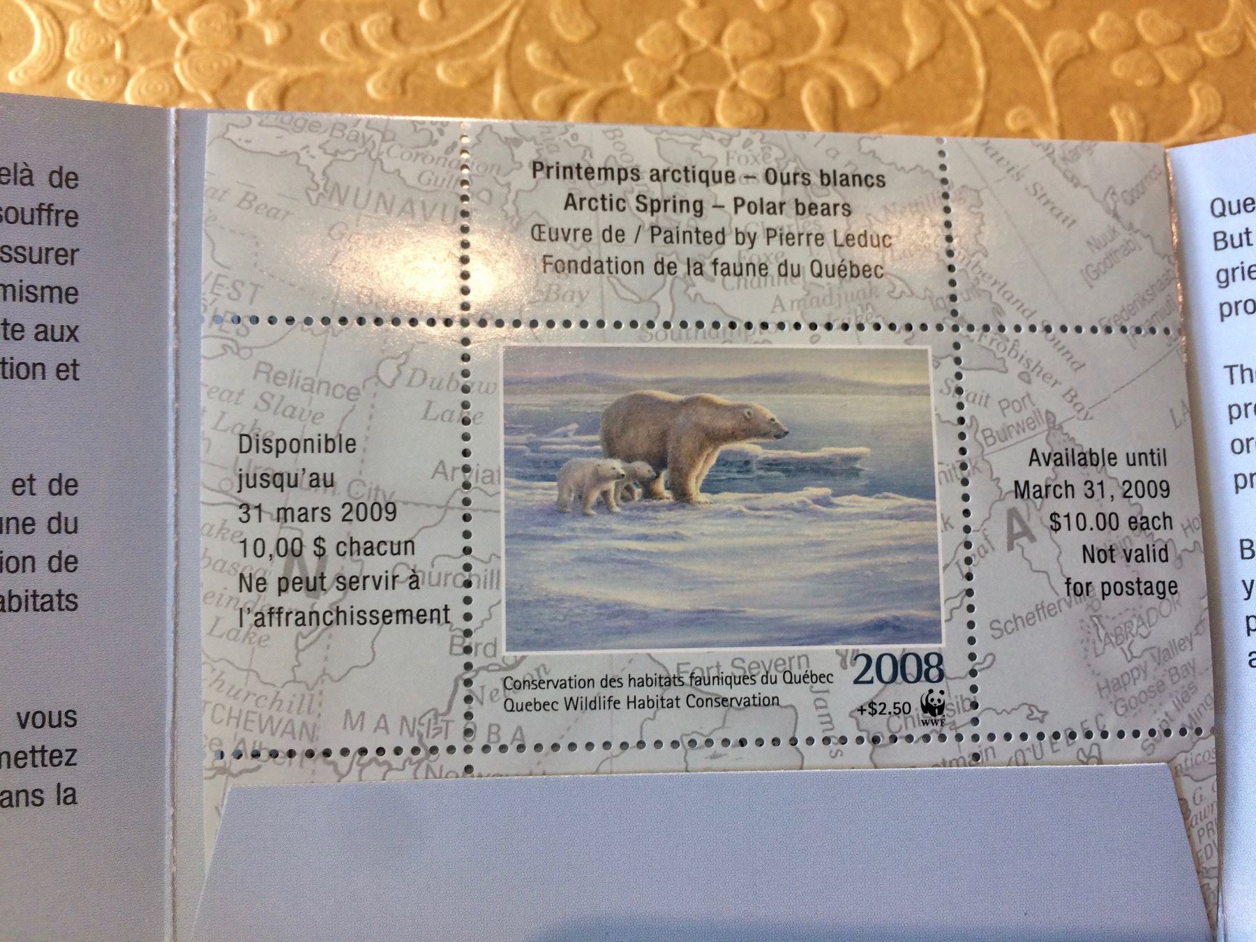 2013 Québec Wildlife Habitat Conservation 10$ Stamp - polar bears