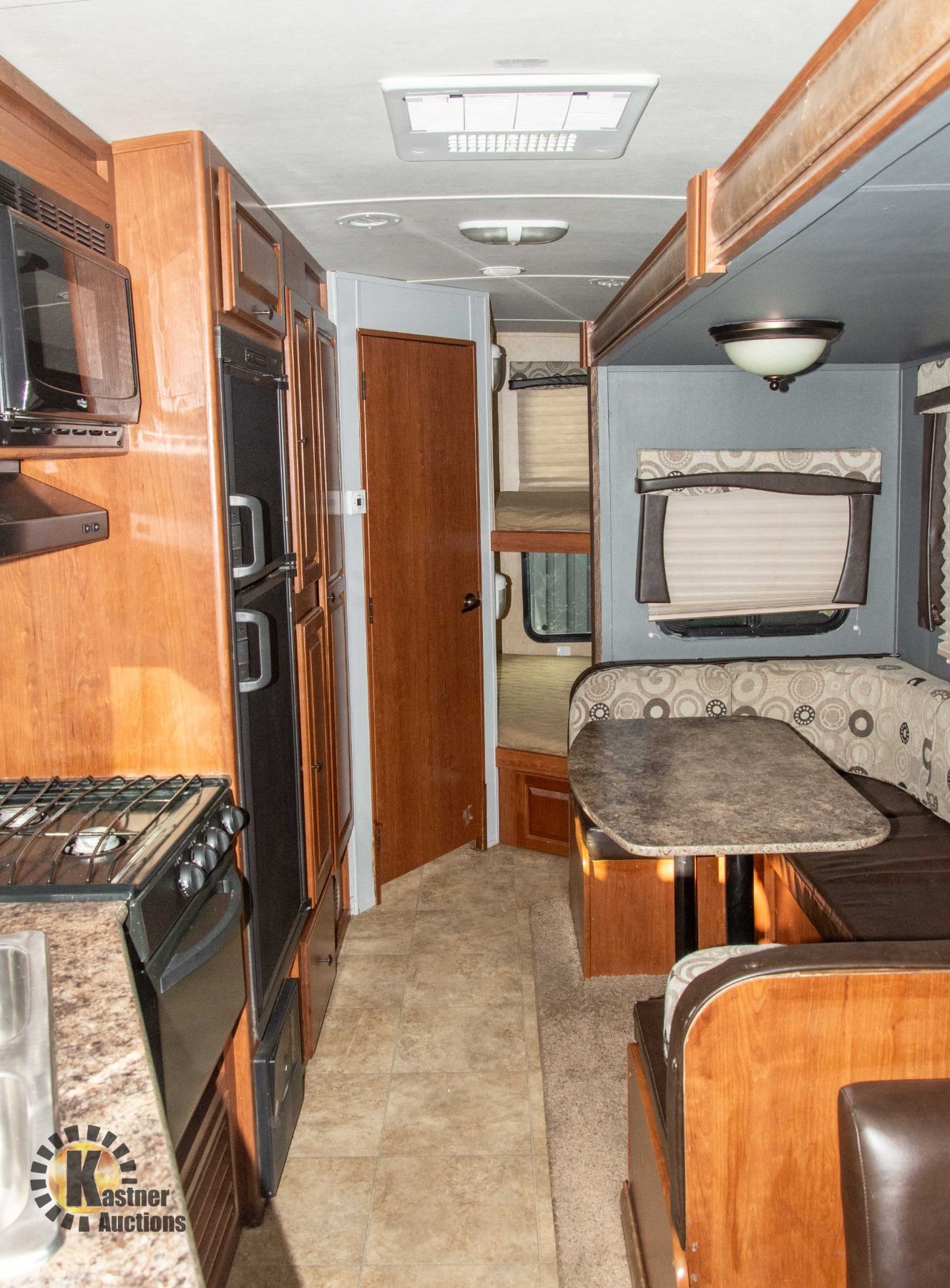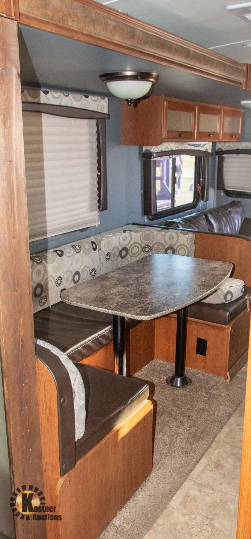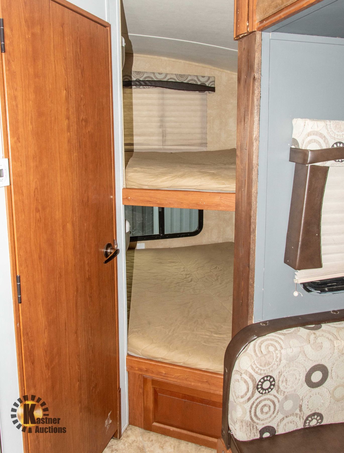 TRAILER FEATURES NORMAL ACTIVE STATUS, ONE SLIDE, DOUBLE SINK, 3 BURNER STOVE, SUBURBAN OVEN, HIGH POINTE MICROWAVE, DOMETIC FRIDGE FREEZER, PULL OUT LEATHERETTE COUCH, WRAP AROUND BOOTH, 2 JUMBO TWIN BUNKS IN THE BACK, BATHROOM WITH TOILET, TUB AND SINK.