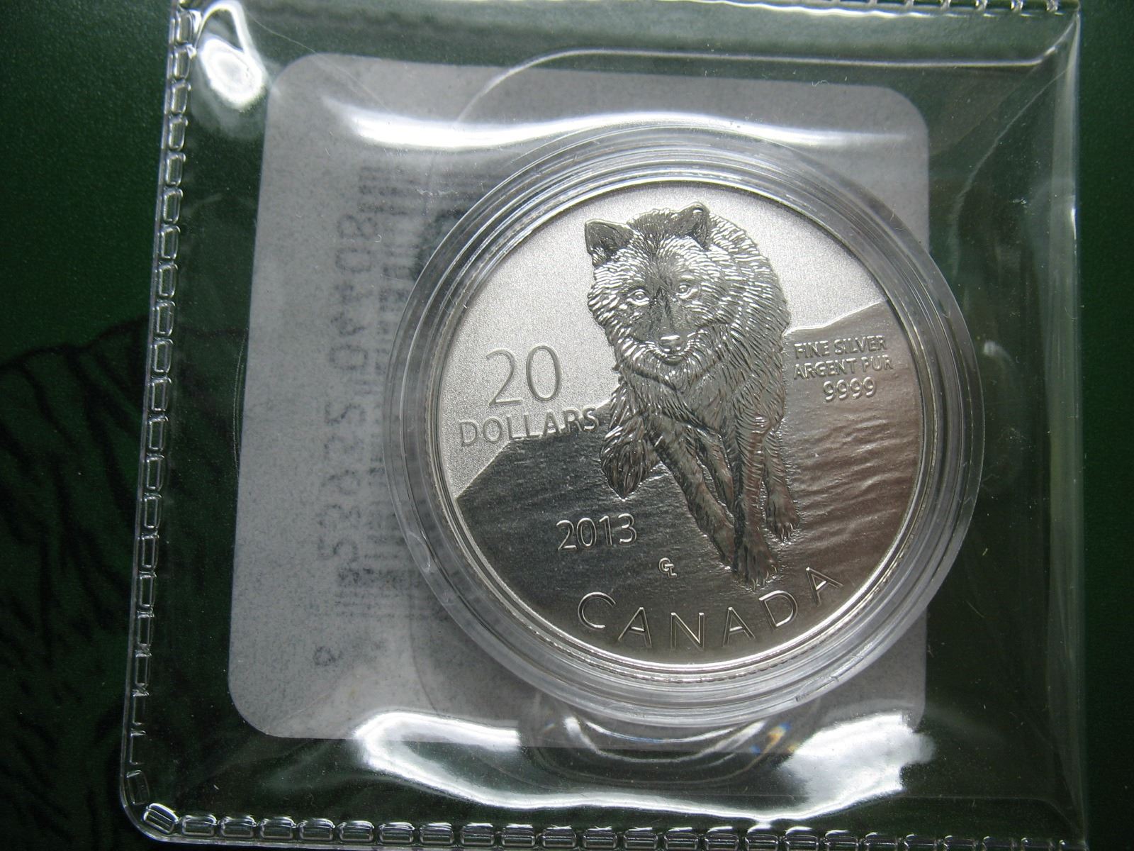 2013 ROYAL CANADIAN MINT $20 SILVER COIN (99.99 pure) - WOLF