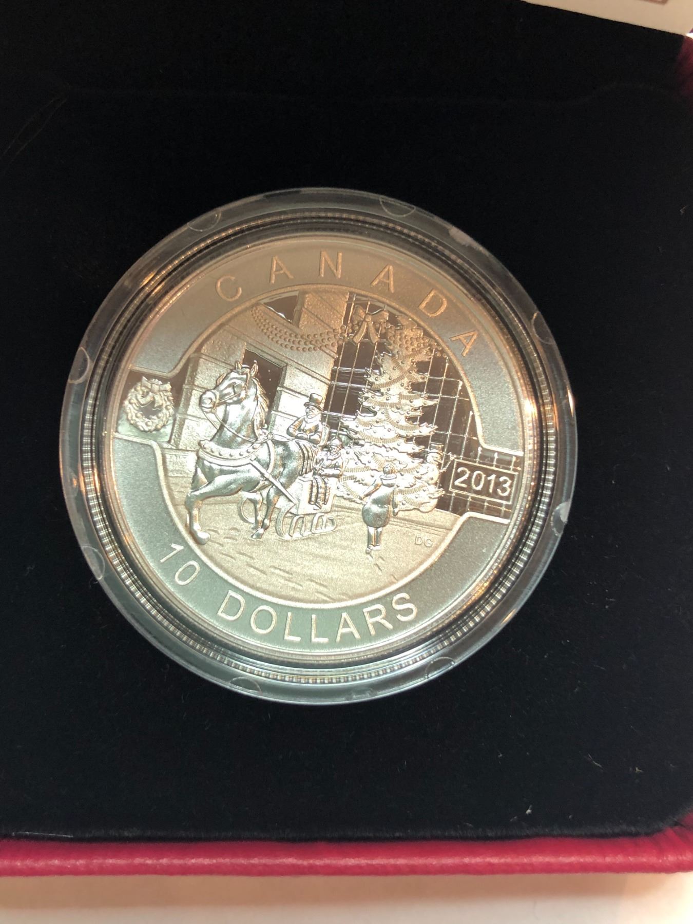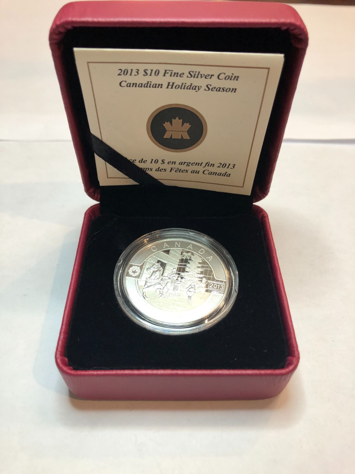 2013 Royal Canadian Mint $10 Fine Silver Coin - Canadian Holiday Season This $10 coin is 99.99% Pure Silver and weighs 15.87grams The design features the scene on a rypical Canadian city street in the winter holiday season