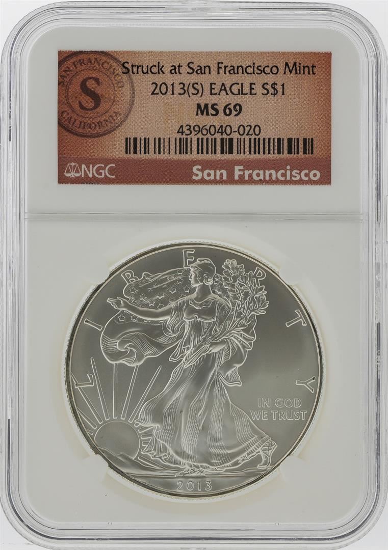 One 2013-S $1 American Silver Eagle Coin NGC Graded MS69. NGC Certified.