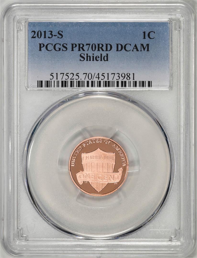 One 2013-S Proof Lincoln Shield Cent Coin PCGS PR70RD DCAM . PCGS Graded.