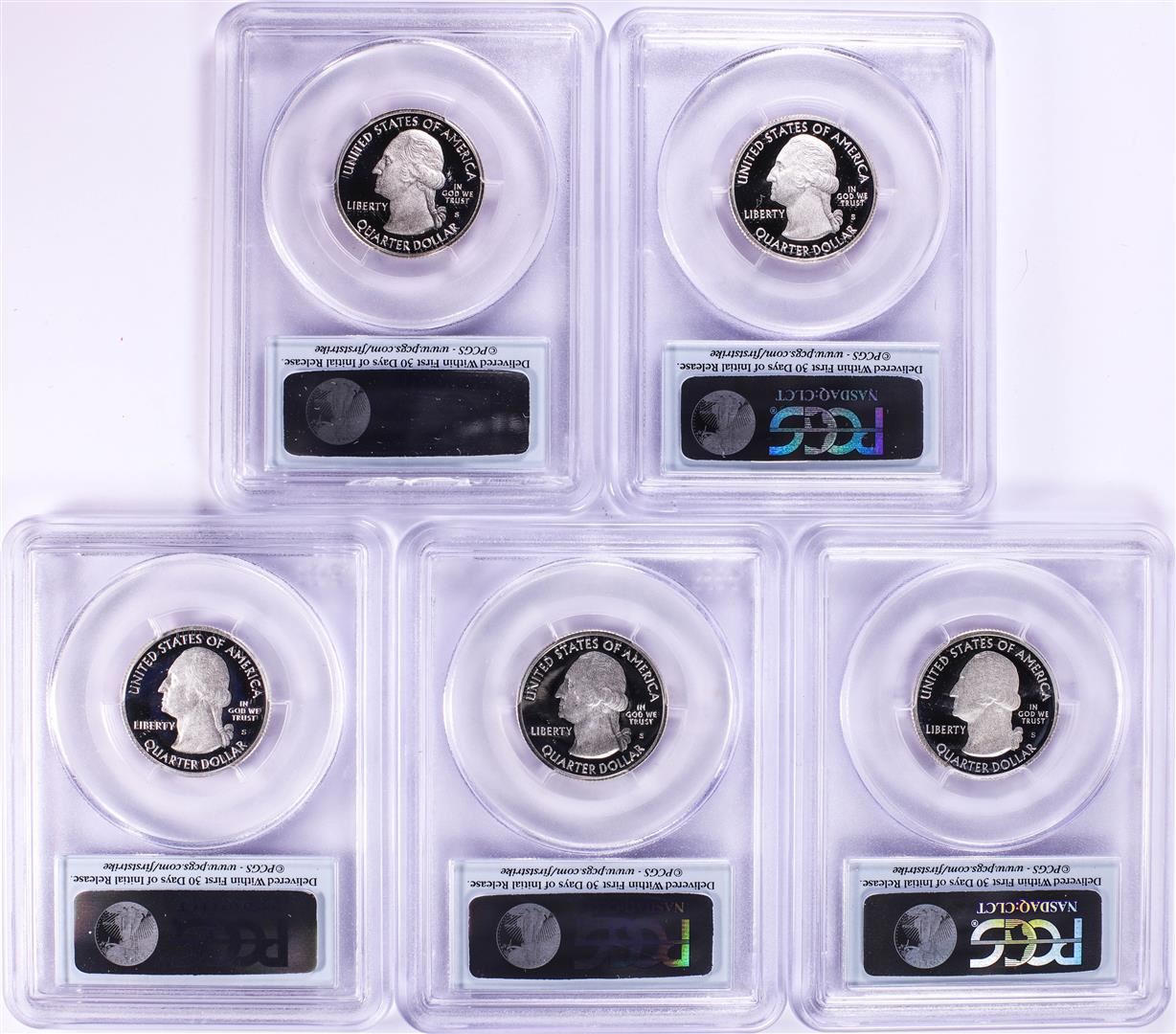 One 2013-S Silver Proof National Parks Quarter (5) Coin Set PCGS PR69DCAM First Strike.