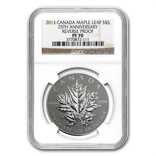 2013 Silver Canadian Maple Leaf 25th Anniv. 5-Coin Set **|**|** 2013 Silver Canadian Maple Leaf 25th Anniv. 5-Coin Set PF-70 NGC ; MSRP: $1100