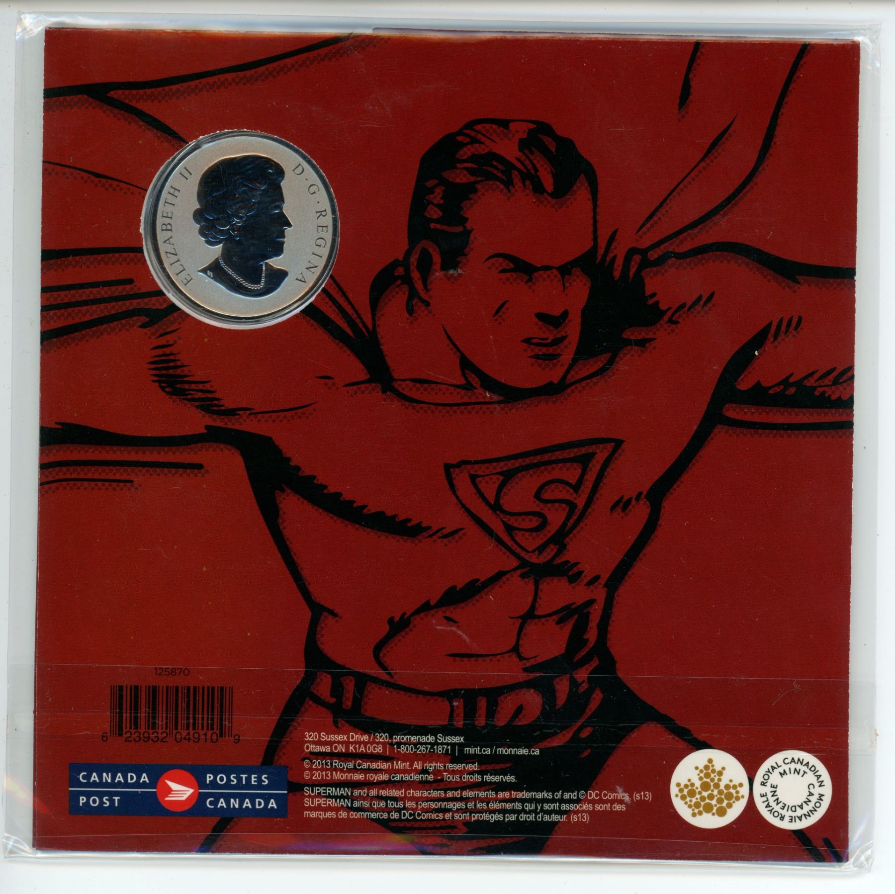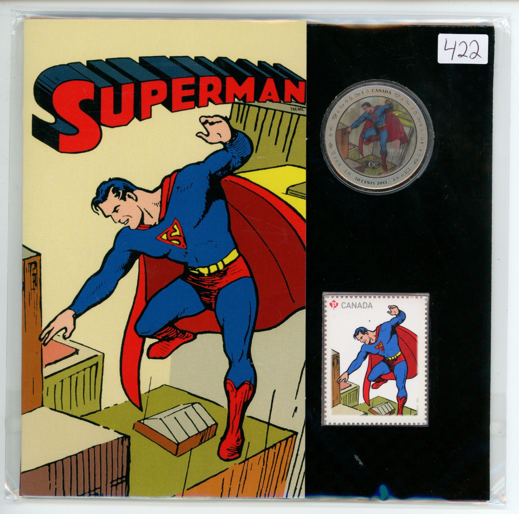 2013 Superman 50 Cents Coin & Stamp Set. Colourized. Specimen. Housed in its original RCM folder of issue.