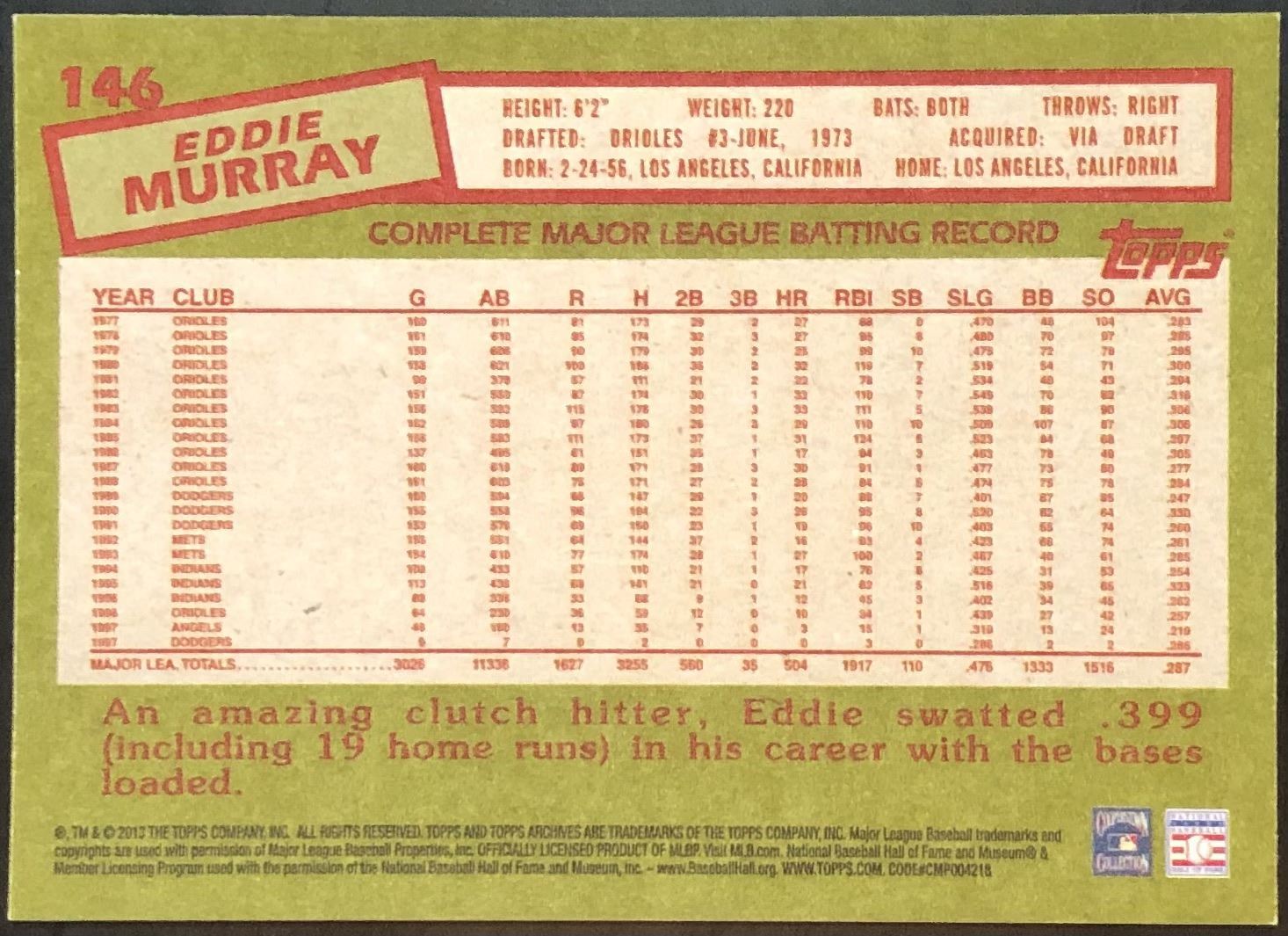 Card #146 MLB, baseball, hall of fame