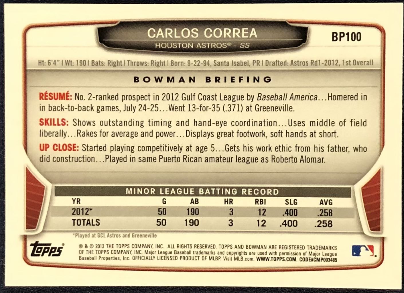 Card #BP100 MLB, baseball, rookie