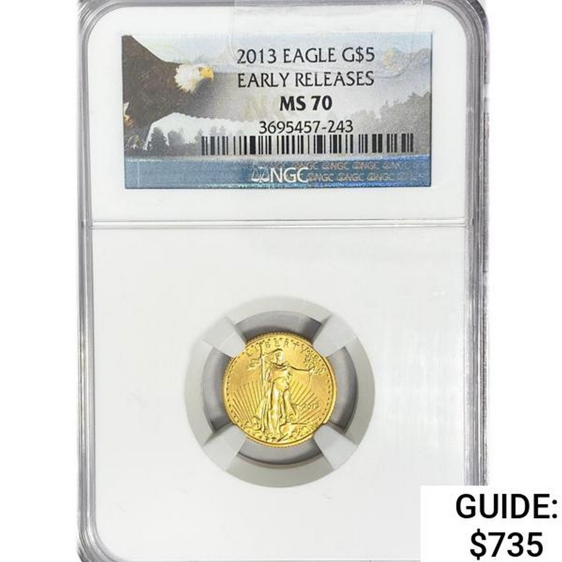 2013 US 1/10oz Gold $5 Eagle NGC MS70