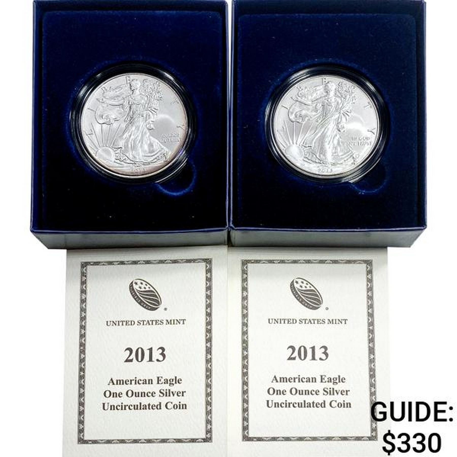 2013 US 1oz Silver Eagle UNC Coins [2 Coins]