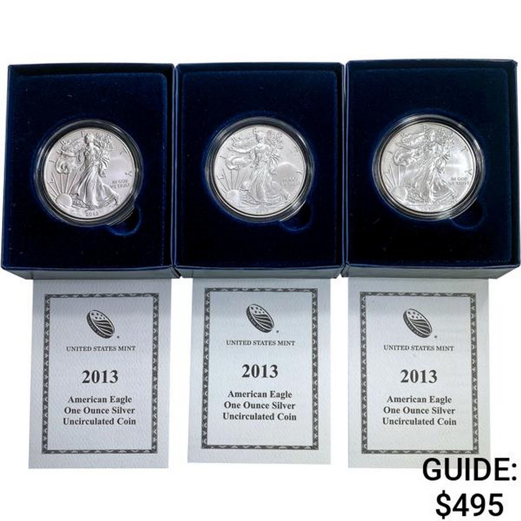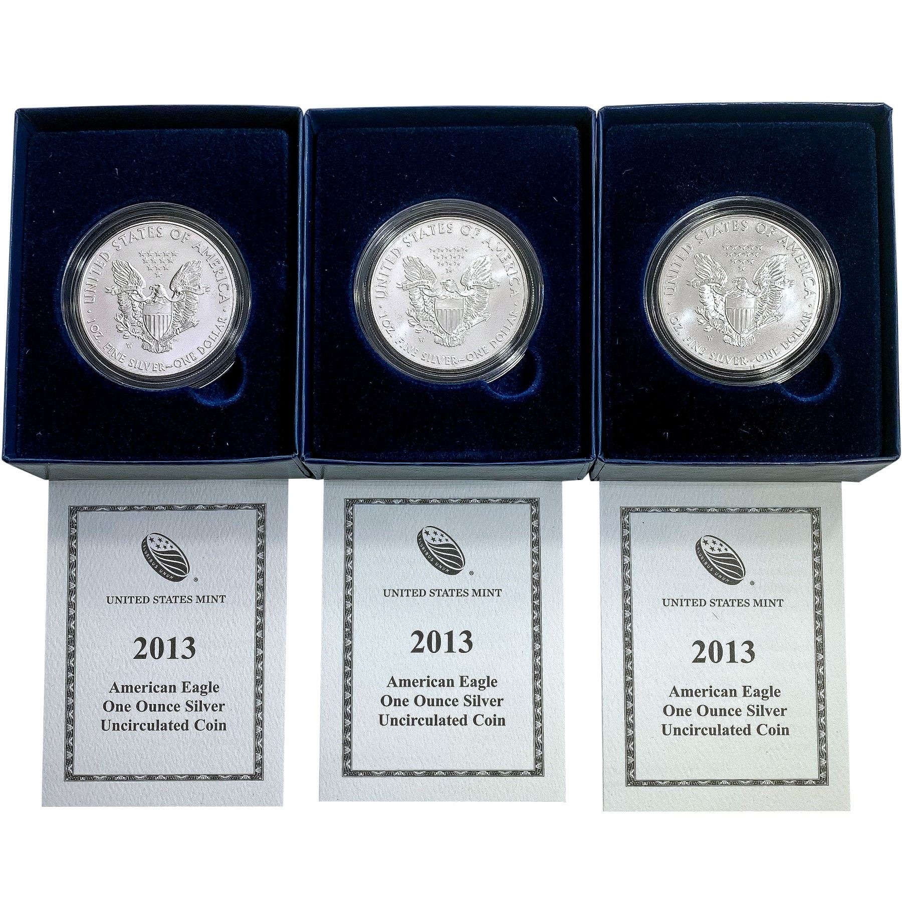 2013 US 1oz Silver Eagle UNC Coins [3 Coins]
