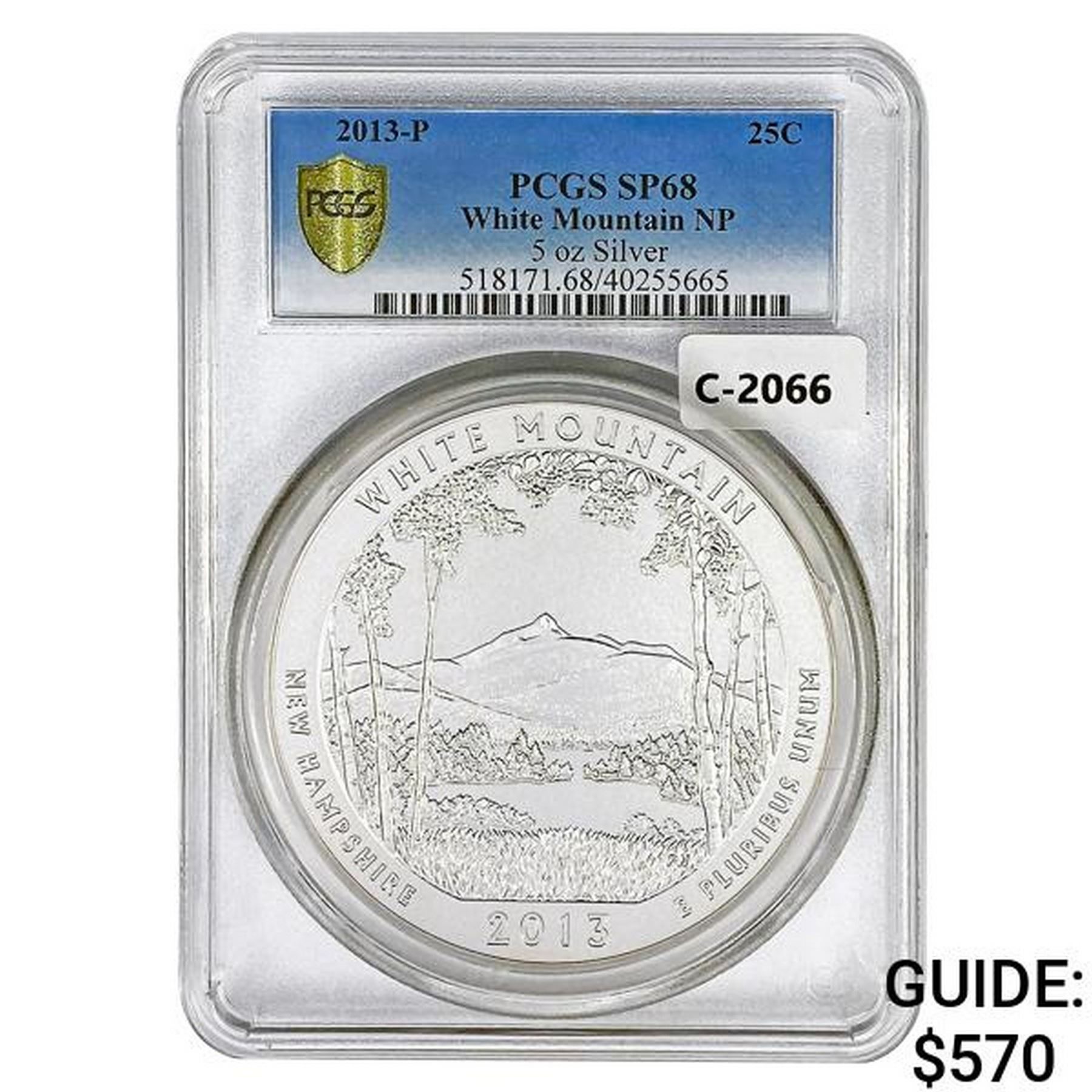 2013 US 5oz Silver White Mt. Round PCGS SP68