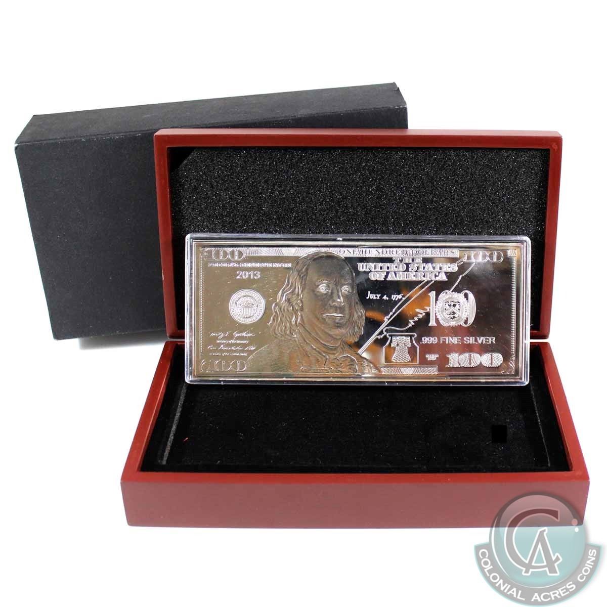 2013 United States $100 1oz Fine Silver Proof (Tax Exempt) Certificate # 9975 of 9,999.