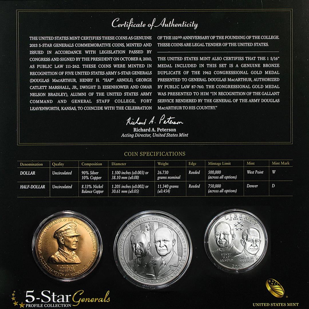 One 2013 United States Mint 5-Star Generals Profile Collection Coin Set.